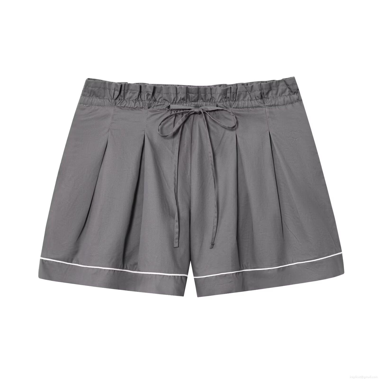 Solid Color, Drawstring, Contrasting Color Piping, Paper Bag Waist