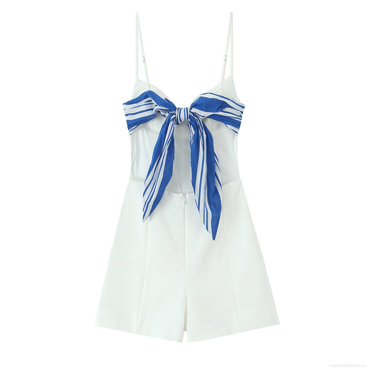 Stripe, Bow, Flowers, Printing, Backless, Deep V