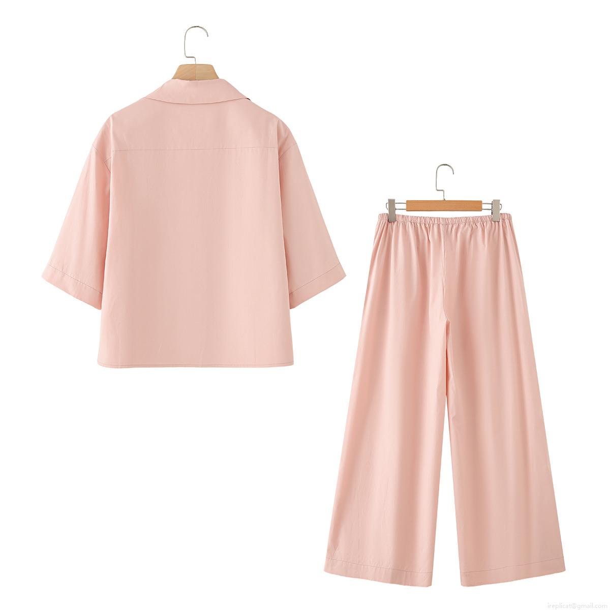 Solid Color, Drawstring, Elastic Waistband, Lapel, Wide-leg