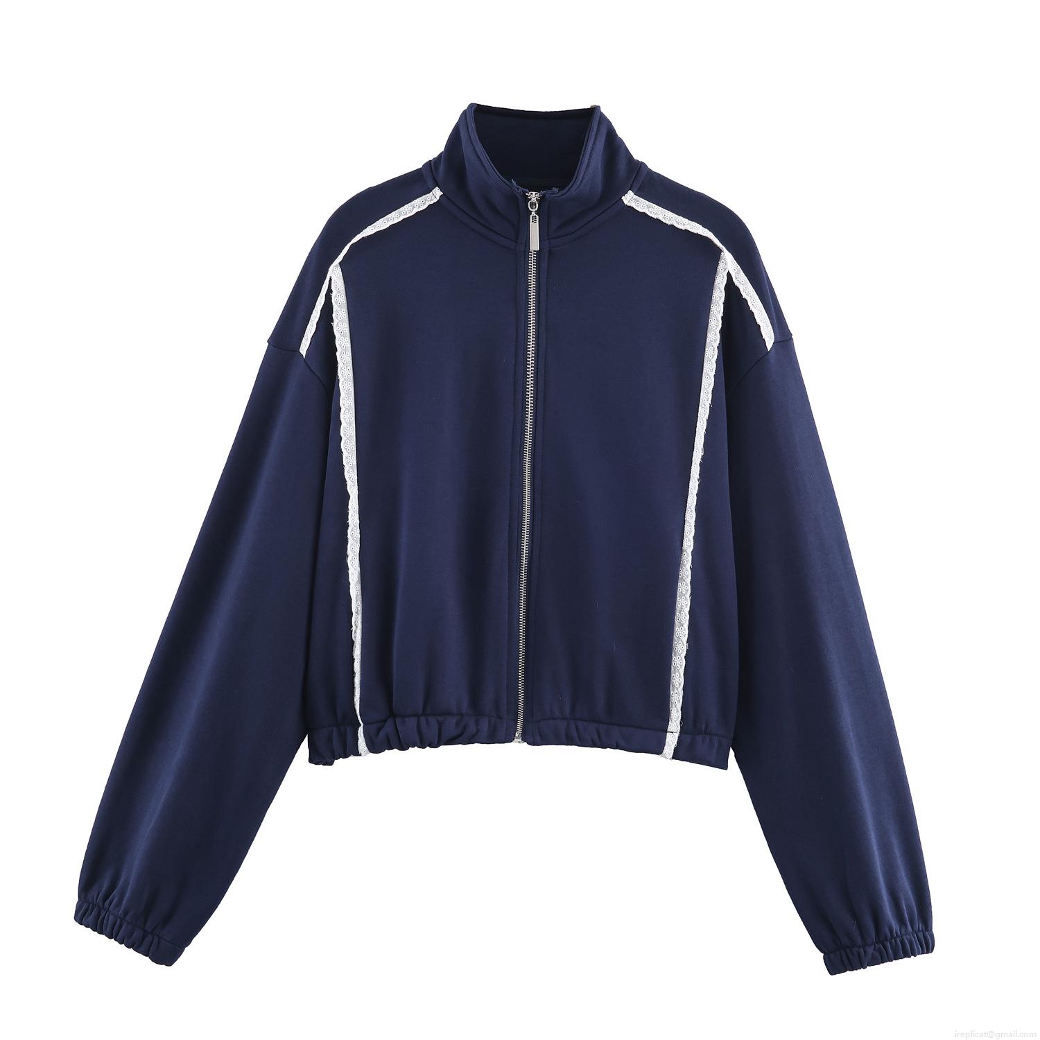 Solid Color, Splice, Zipper, Stand-up Collar, Wide-leg, Openwork Lace
