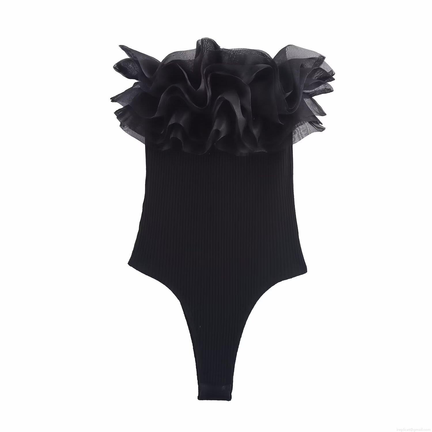 Solid Color, Screw Thread, Ruffles, Layered Decoration, Ribbed Knit, Organza Pleats