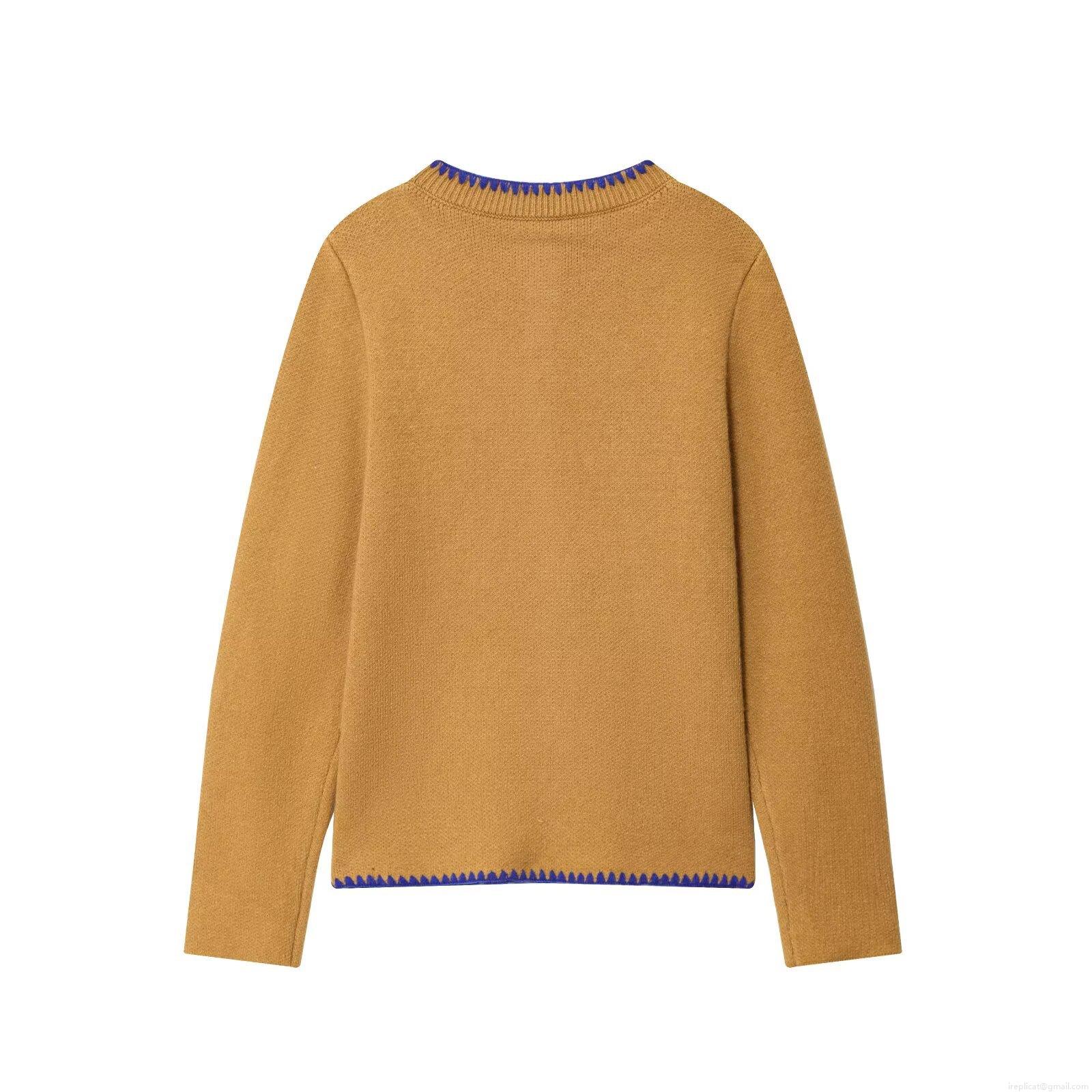 Solid Color, Knit Crochet, Resin Buttons, Contrast Color Overlocking, Wavy Edge Stitching