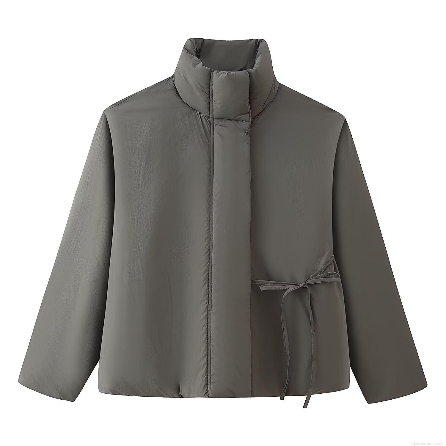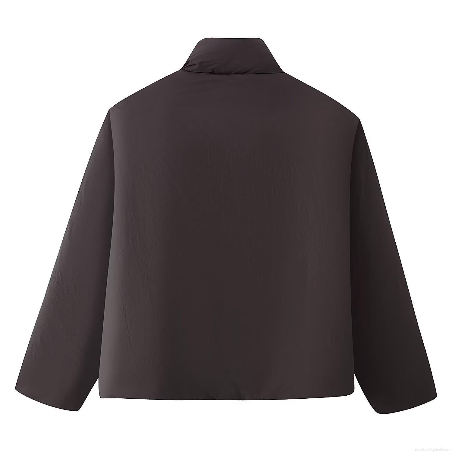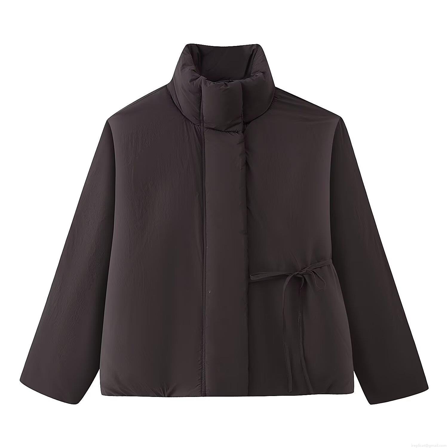 Solid Color, Snap Fastener, Stand-up Collar, Ribbon Bow, Loose Design