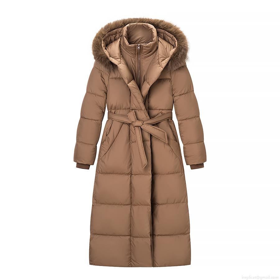 Solid Color, Pocket, Quilting, Fur Collar, Hood, Waist Tie