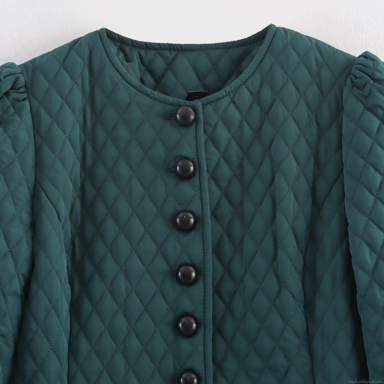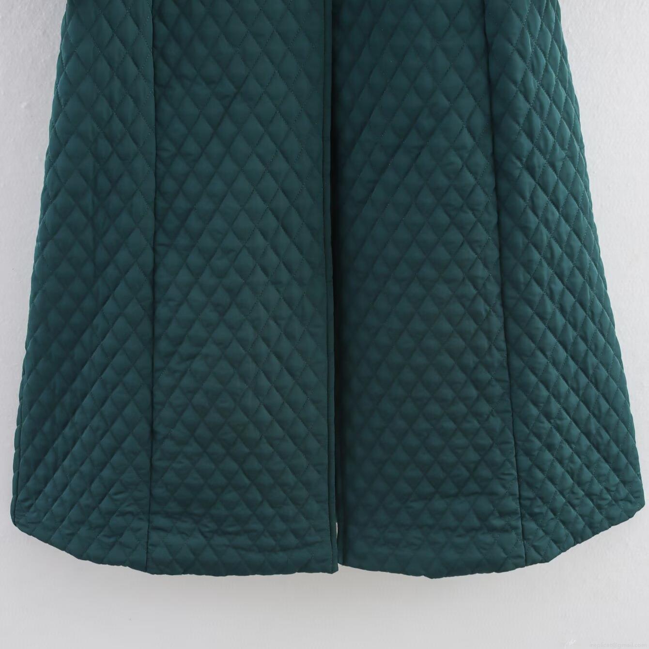 Solid Color, Diamond Pattern, Waist-cinching Design, Single-breasted, Quilting, Big Pocket