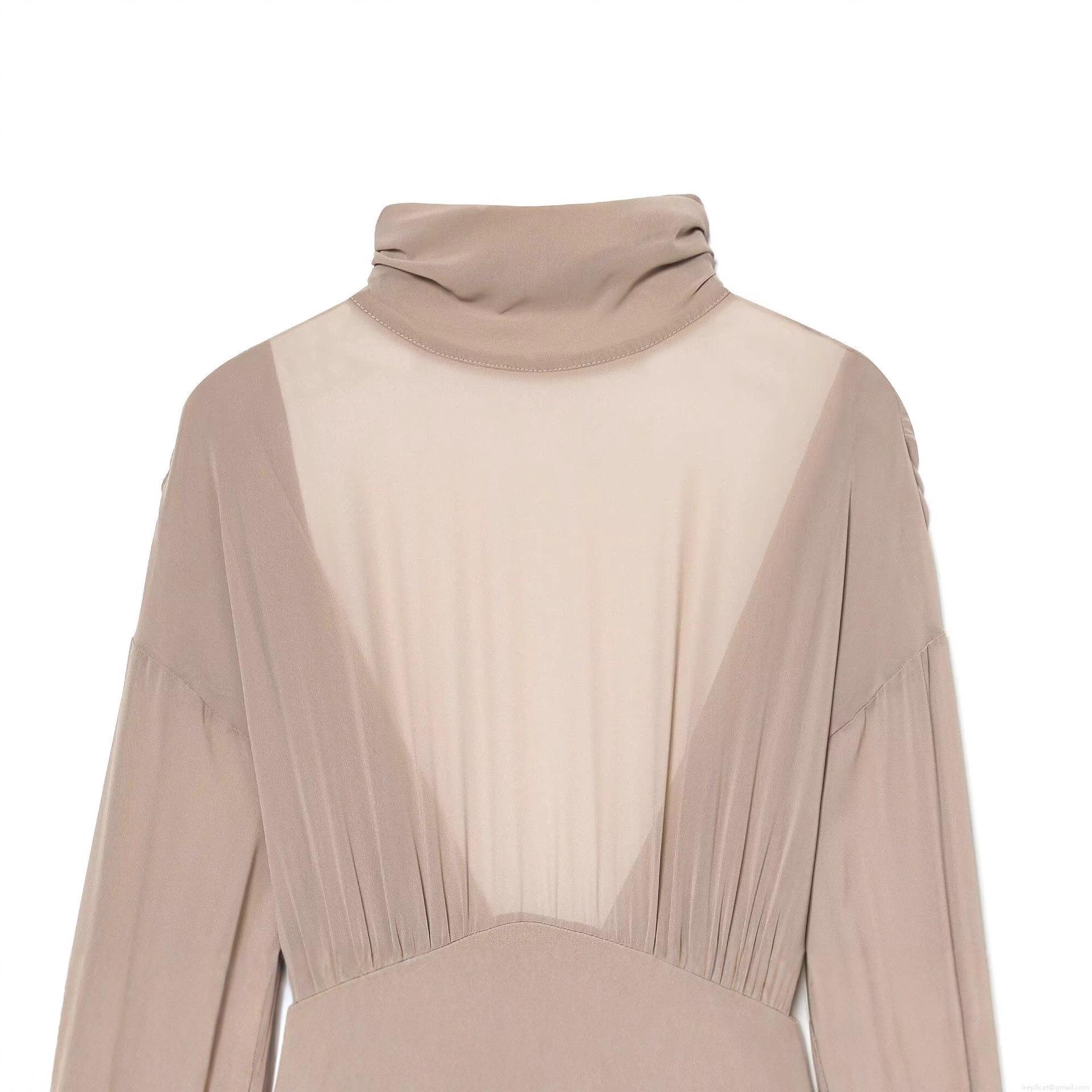 Solid Color, Gathering, Mesh Splicing, Big Backless, Turtleneck