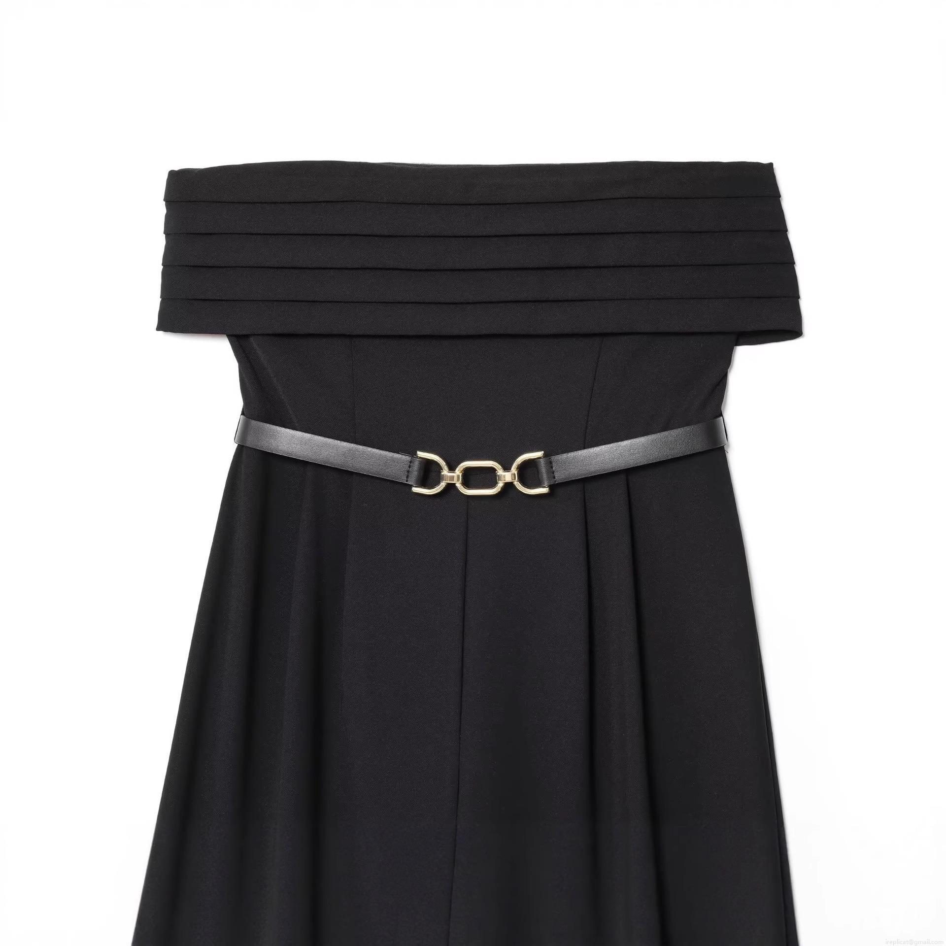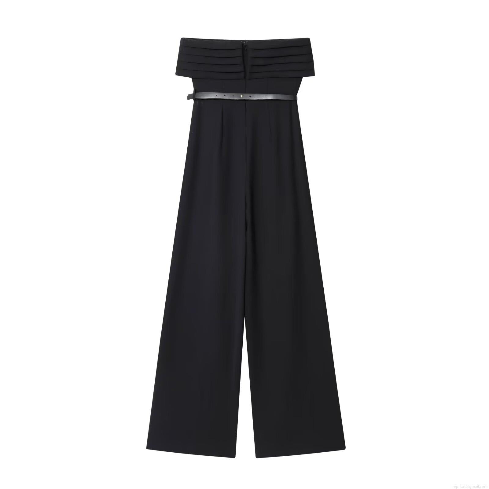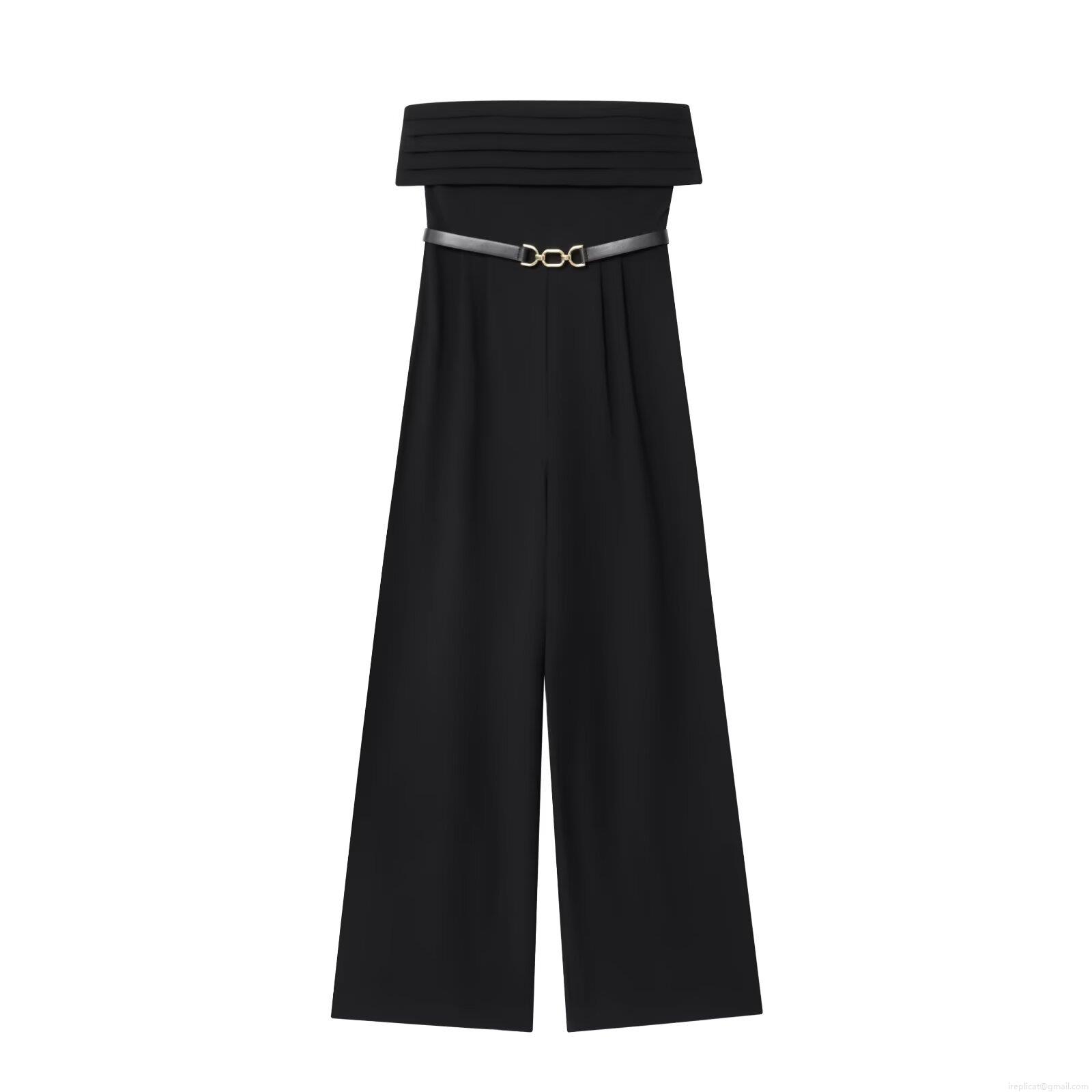Solid Color, Belt, Strapless, Wide-leg, Metal Chain Buckle