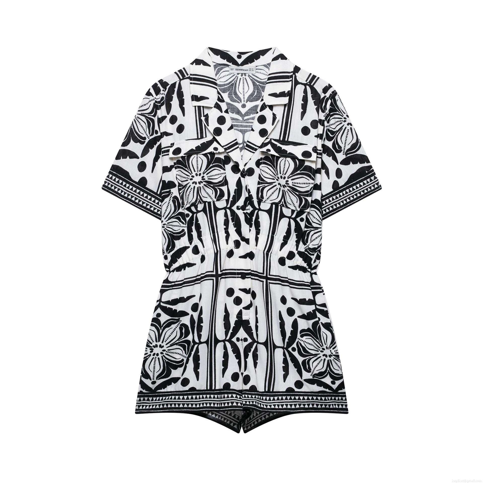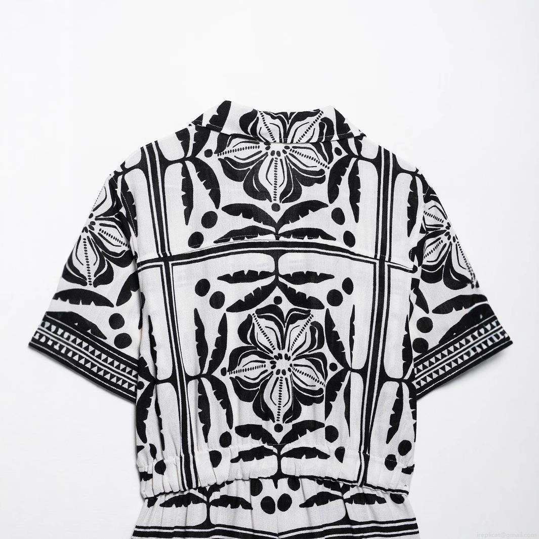 Tropical Plants, Geometric Patterns, Flowers, Printing, Elastic Waistband, Button Decoration, Cuban Territory