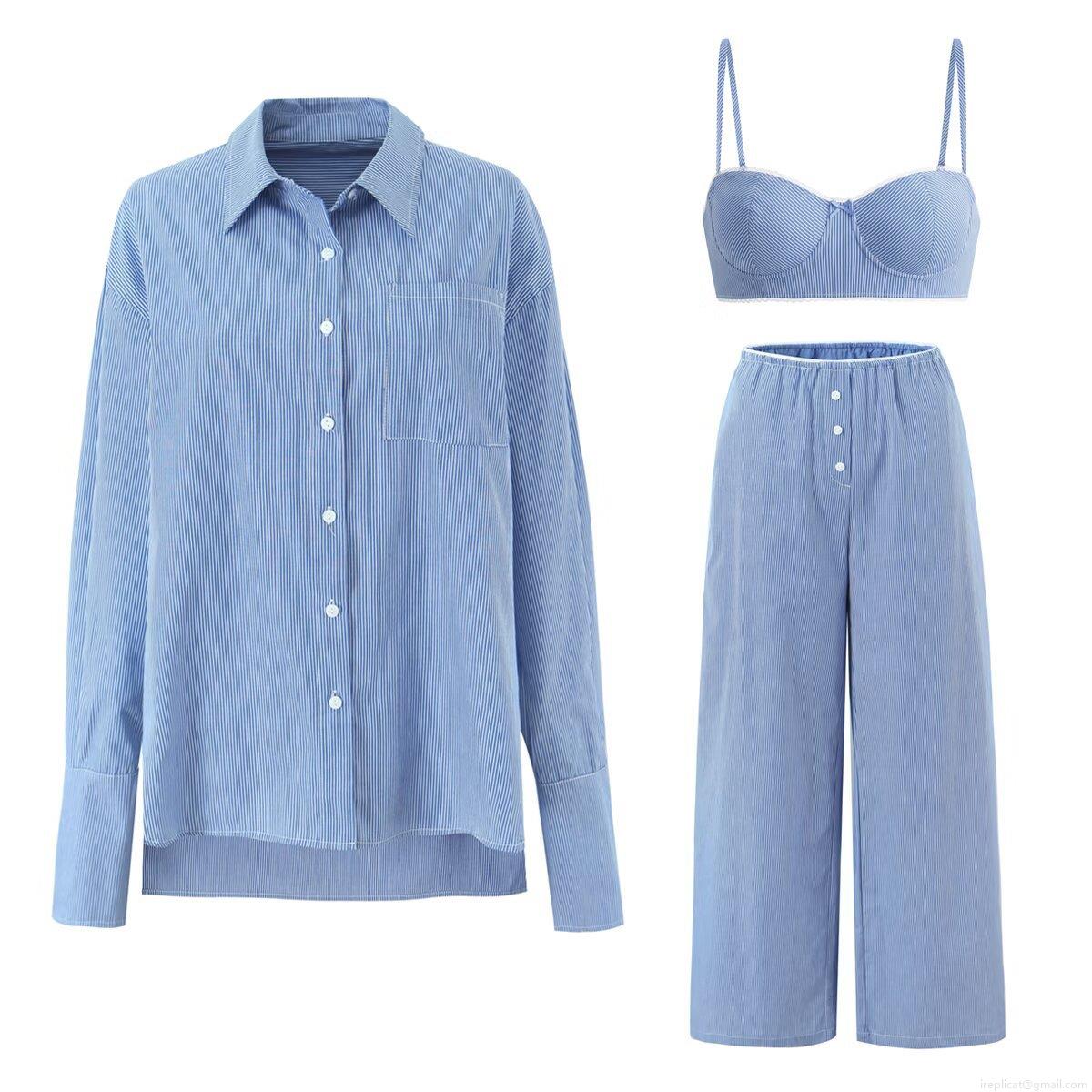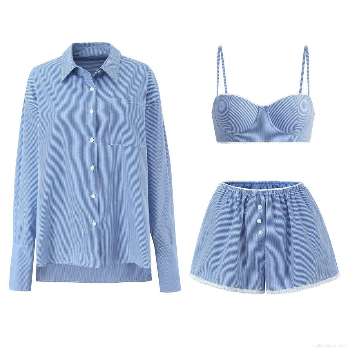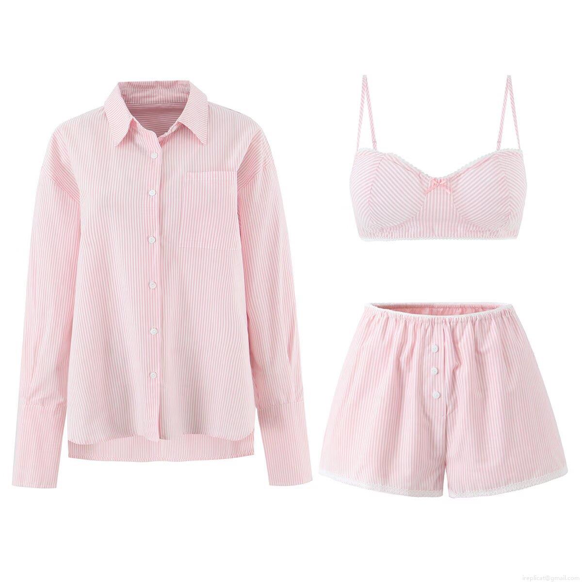 Bow, Pinstripes, Single Pocket, Button Decoration, White Lace Trim