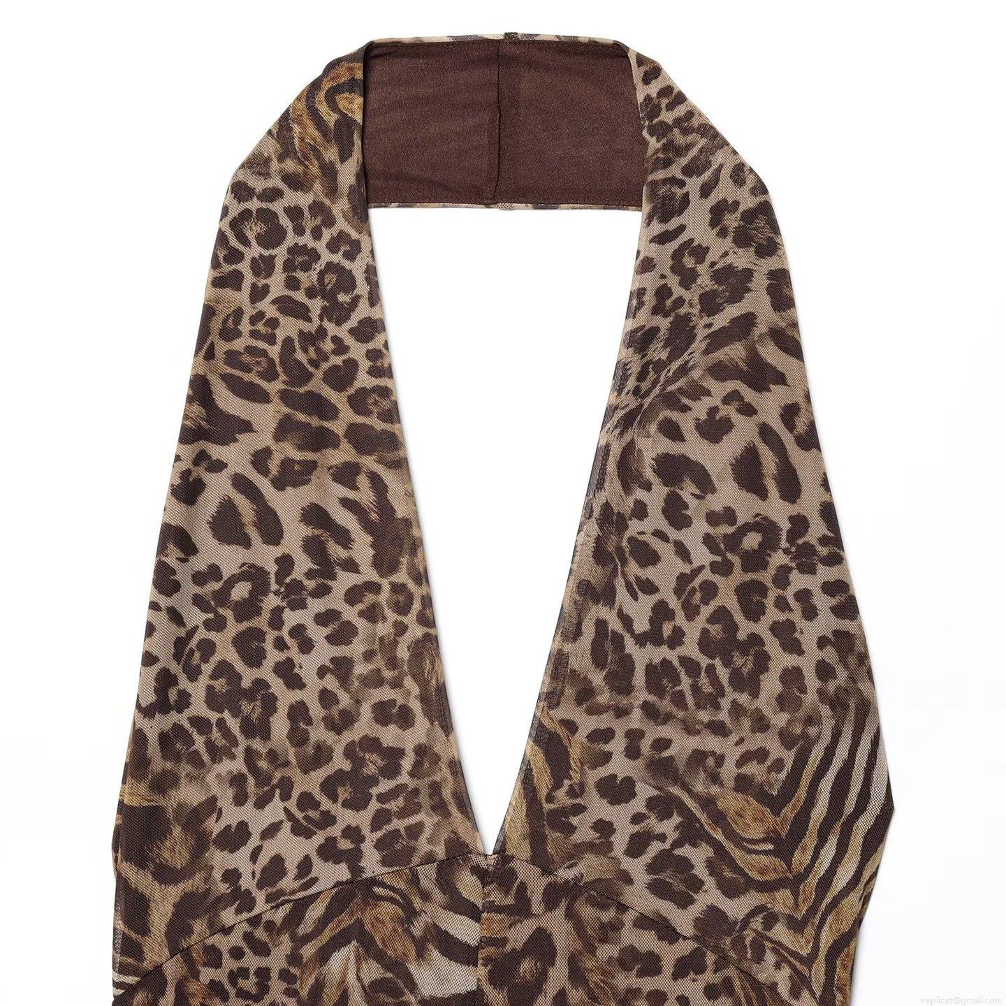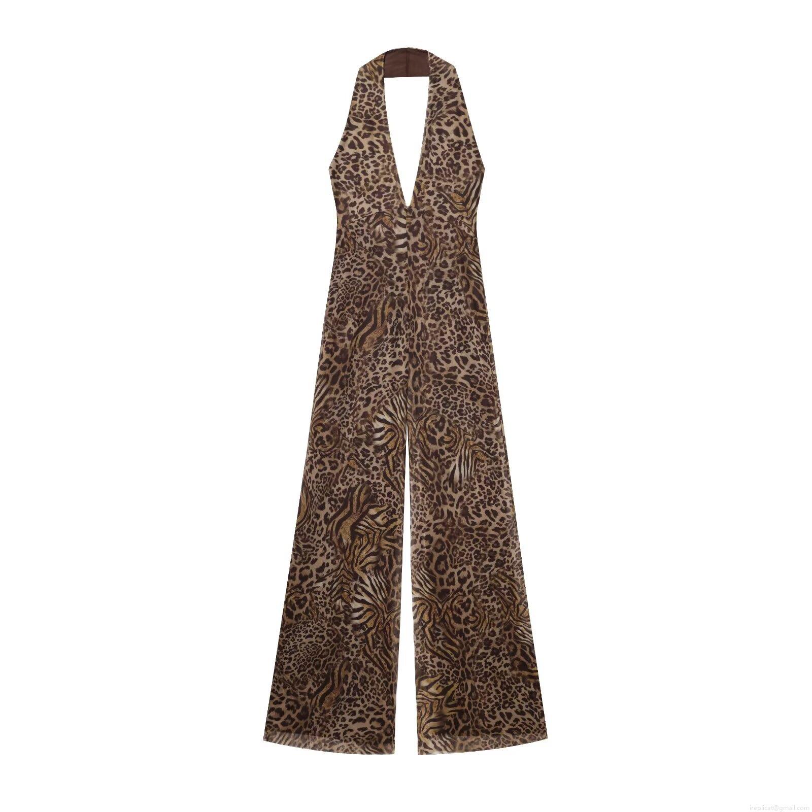 Leopard Print, Animal Print, Printing, Backless, Wide-leg, Deep V, Halter Neck Collar
