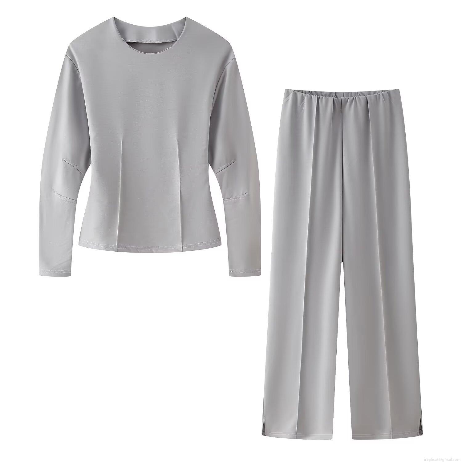 Solid Color, Elastic Waist, Wide-leg Cut, Structural Line Decoration
