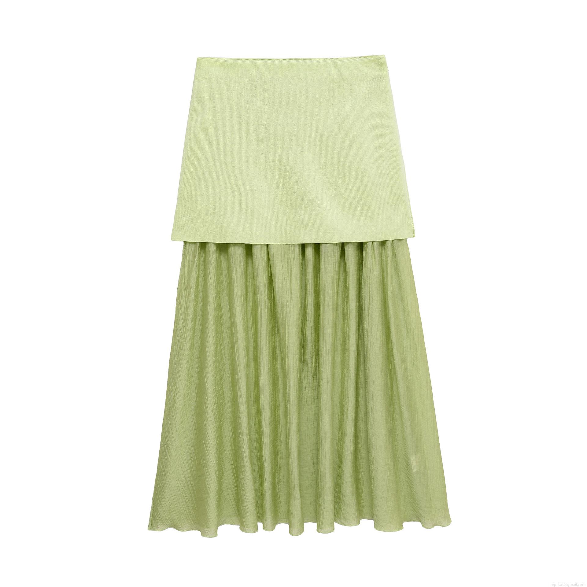 Solid Color, V-neck, Pleated Splicing, Gold Buttons