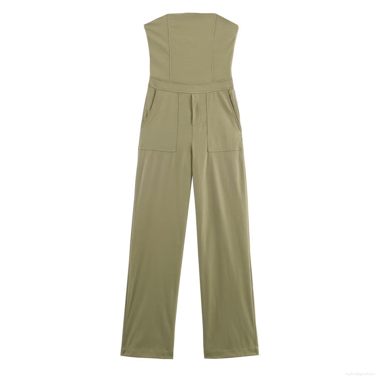 Solid Color, Strapless, Wide-leg, Crouching, Metal Zipper, Work Pockets