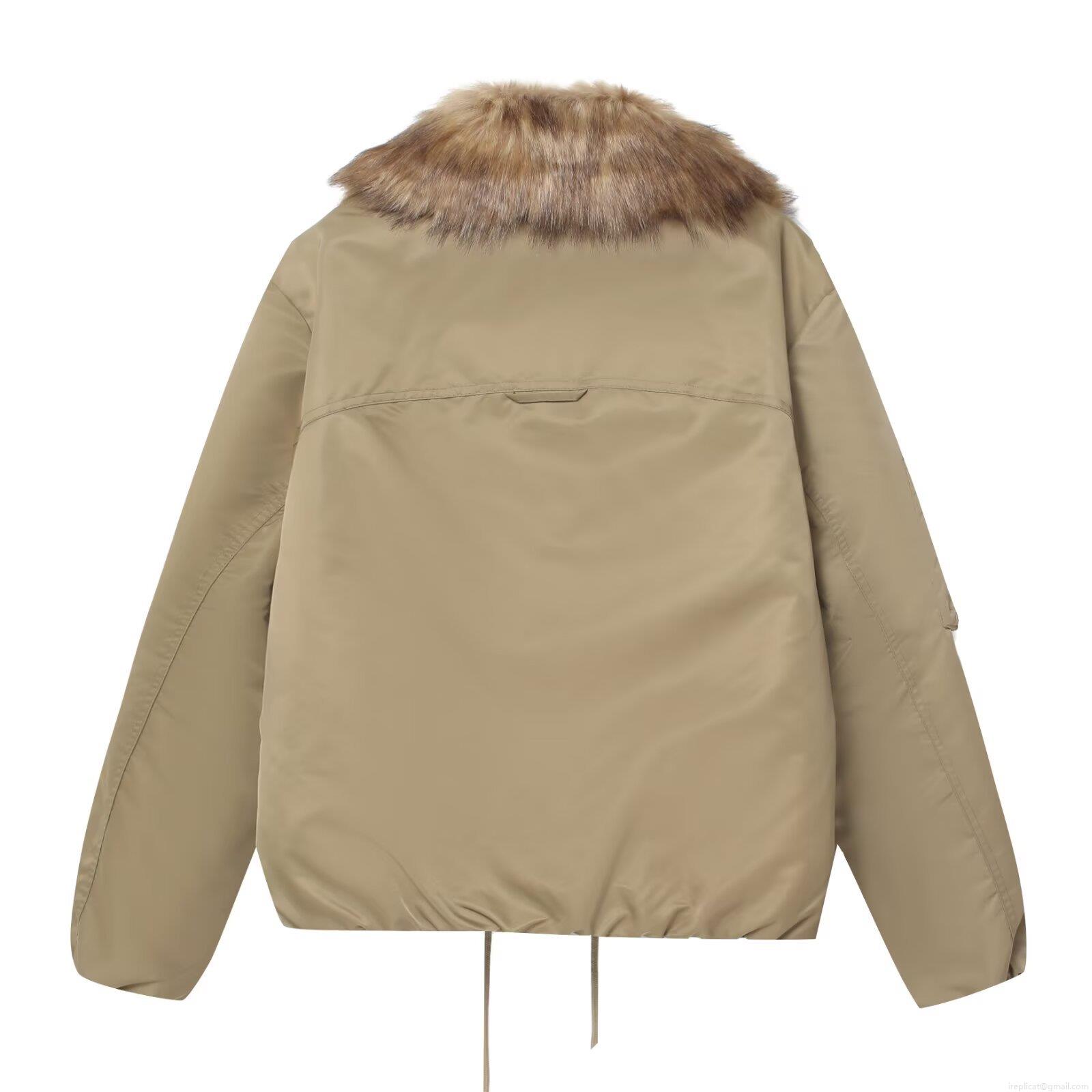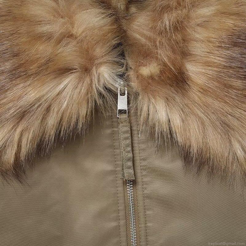 Solid Color, Zipper, Drawstring Hem, Detachable Fur Collar, Arm Pockets