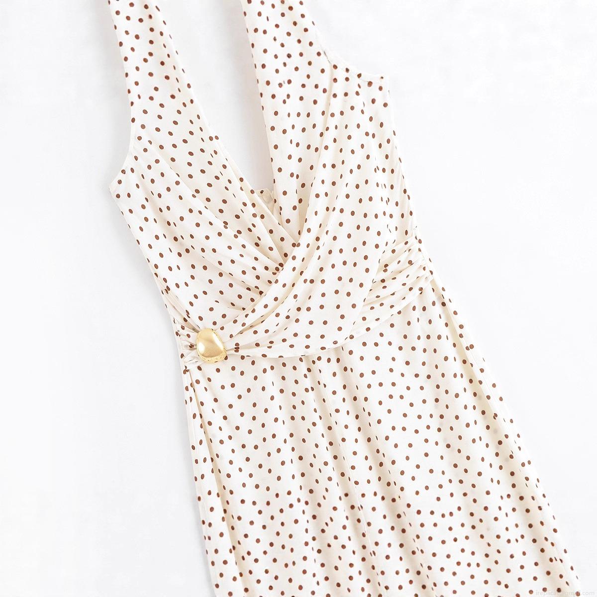 Polka Dots, Color Blocking, Neckband, Metal Decoration, Deep V