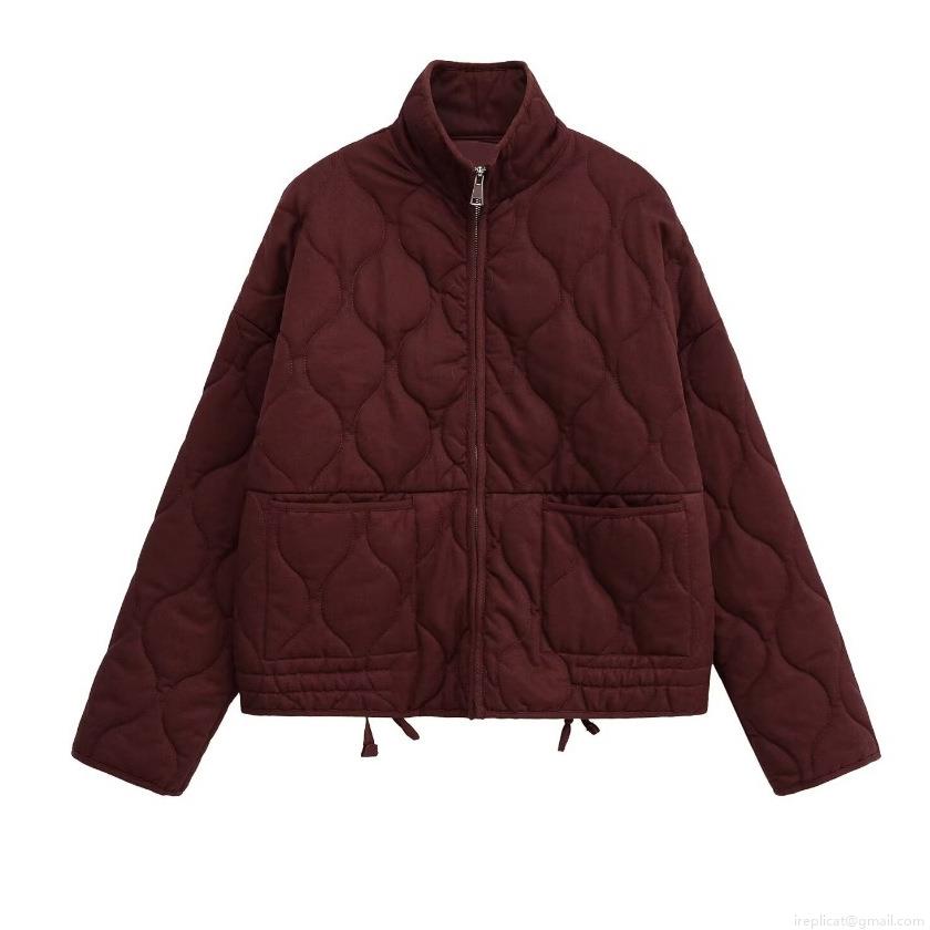 Zipper, Quilting, Stand-up Collar Design, Large Patch, Gourd Pattern, Drawstring At The Hem, Wavy Quilting