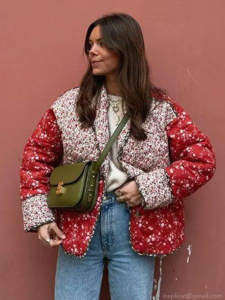Splice, Floral Pattern, Quilting, Pleats, Color Blocking, Wooden Buttons