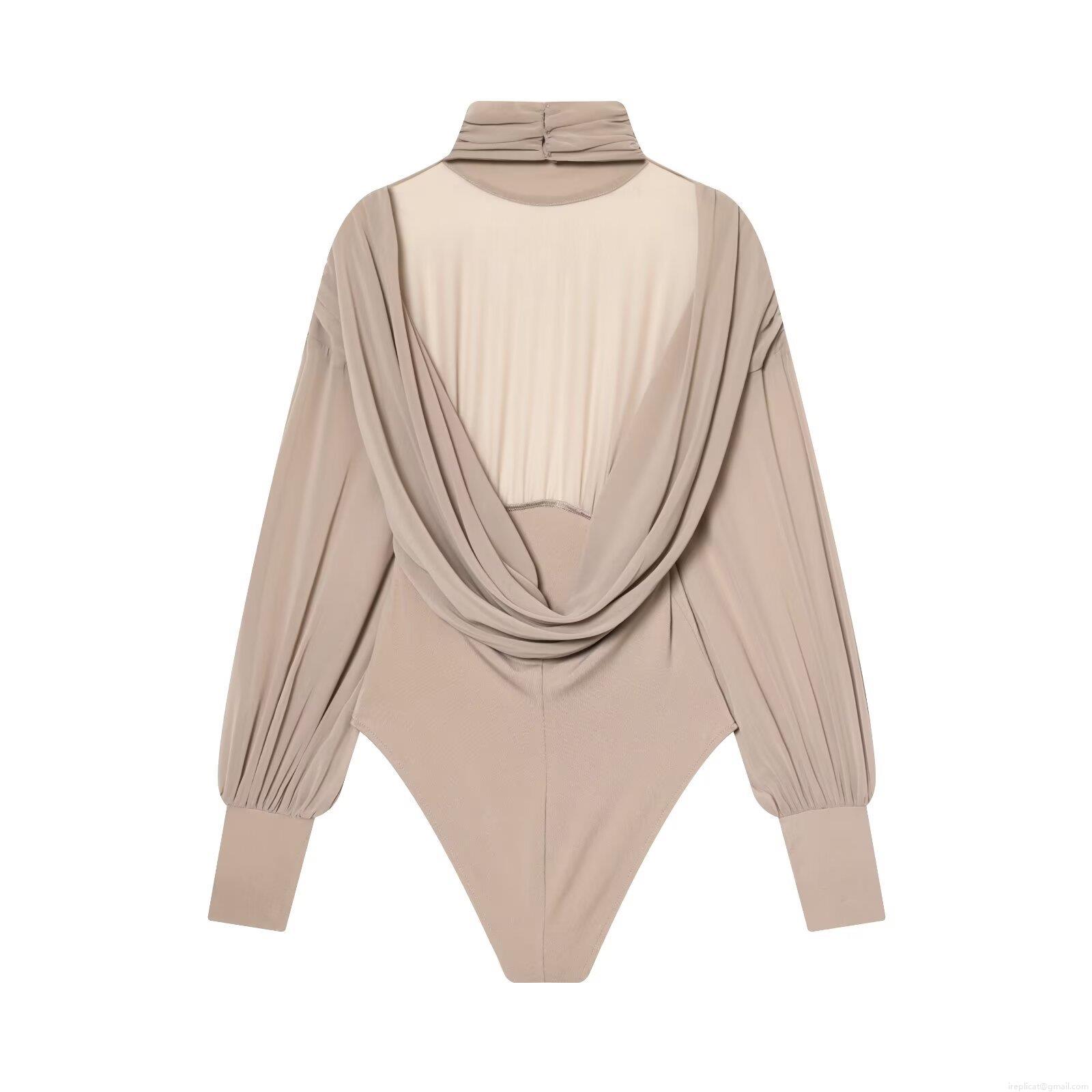 Solid Color, Splice, Pleats, Backless, Perspective, Puff Sleeves