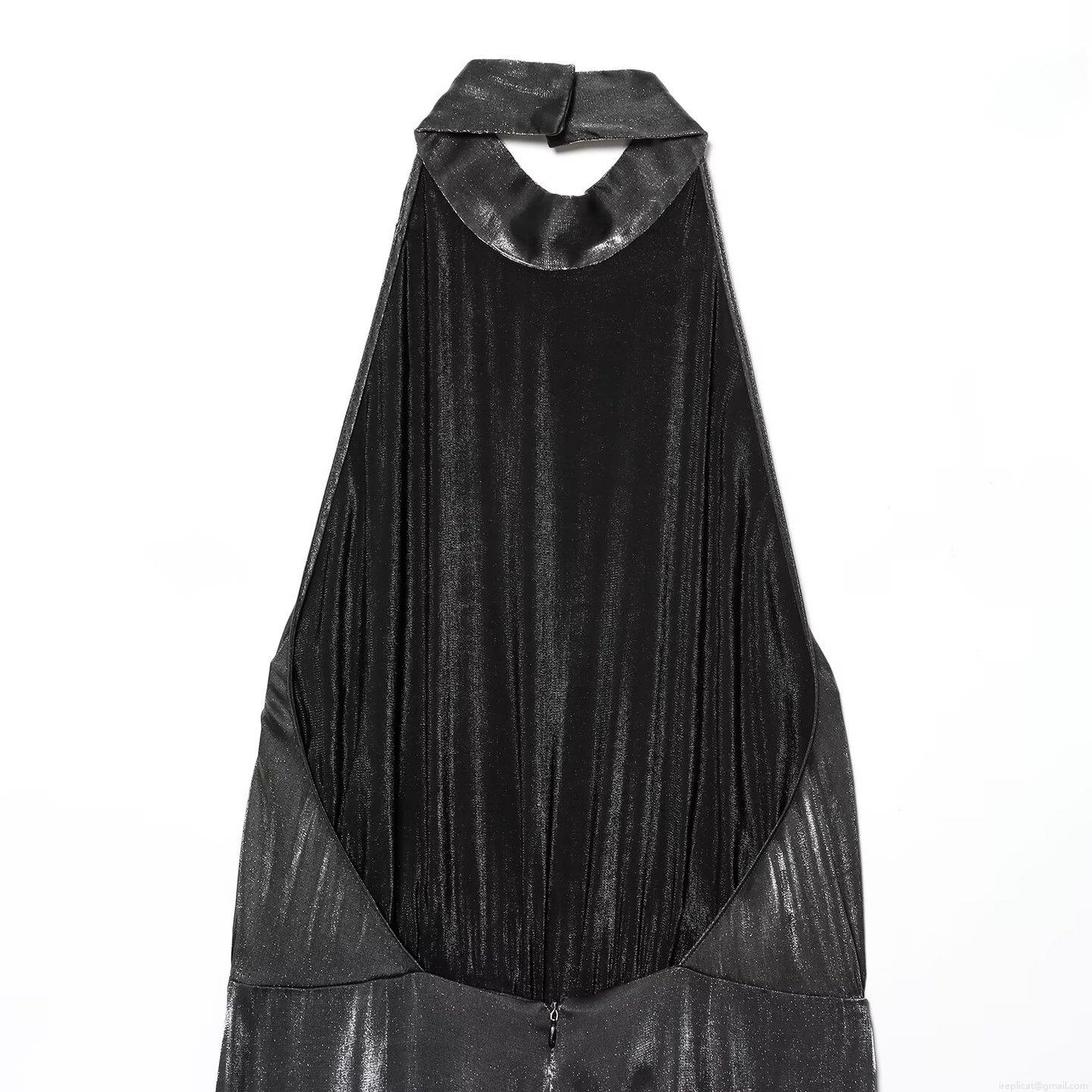 Solid Color, Pleats, Neckband, Backless, Metallic Texture, Metallic Luster