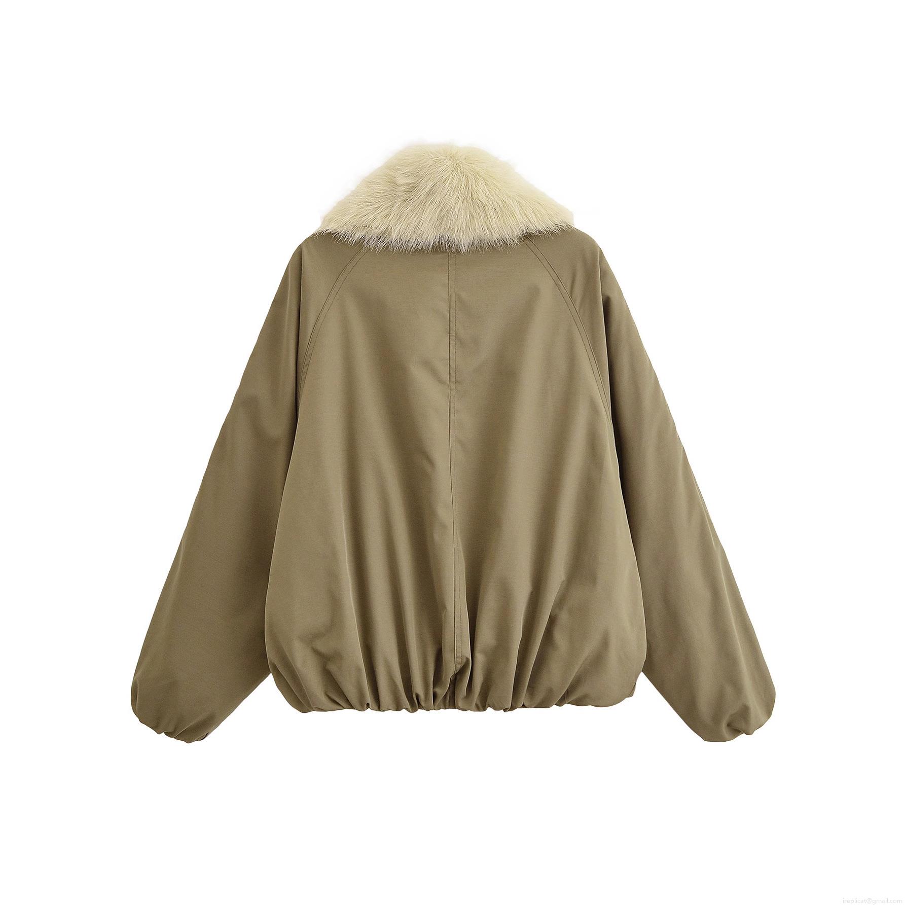 Solid Color, Lantern Sleeves, Twill Fabric, Horn Button, Large Fur Collar