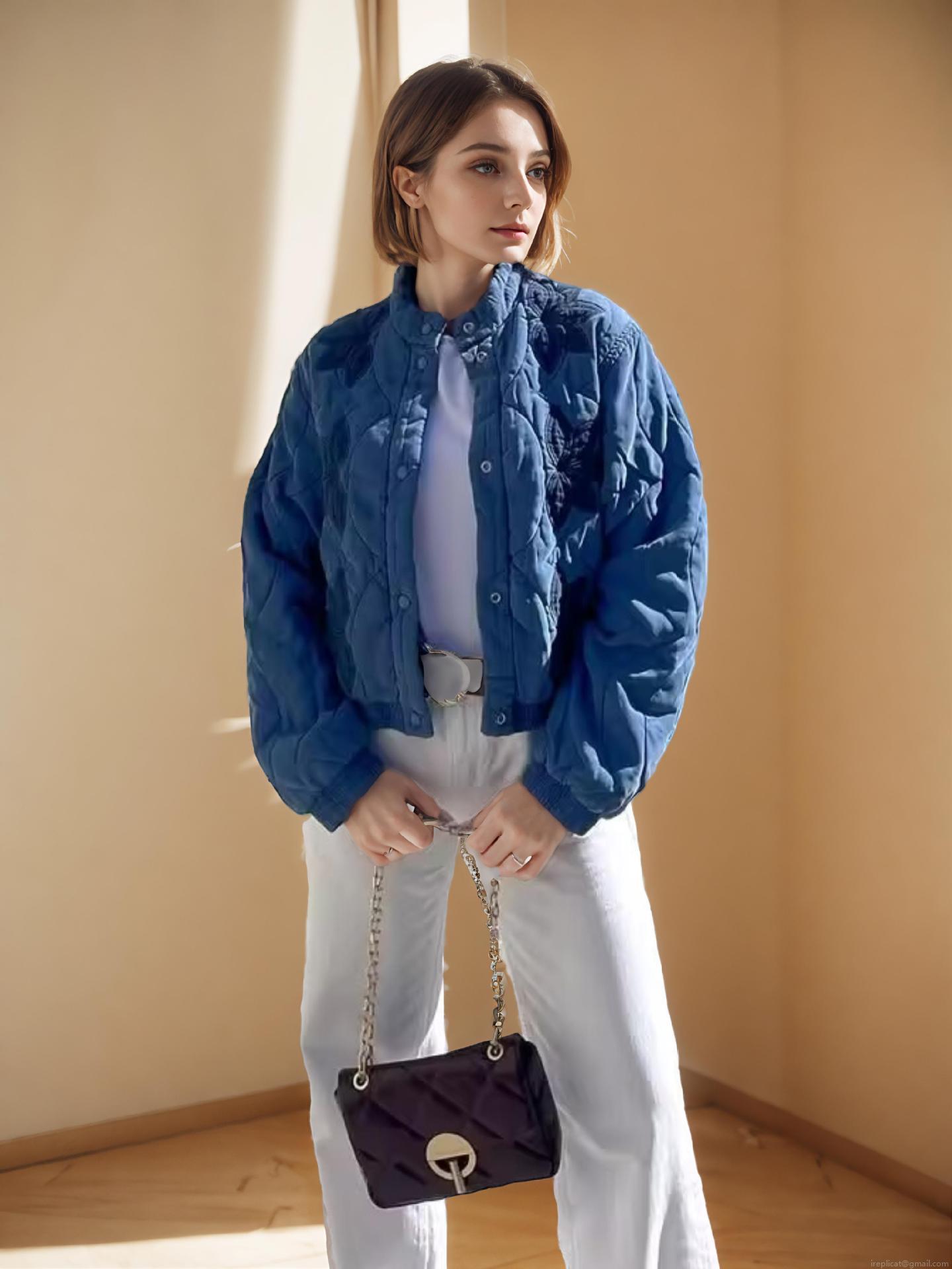 Embroidery, Quilting, Flowers, Stand-up Collar, Single-breasted, Plant Leaf Embroidery