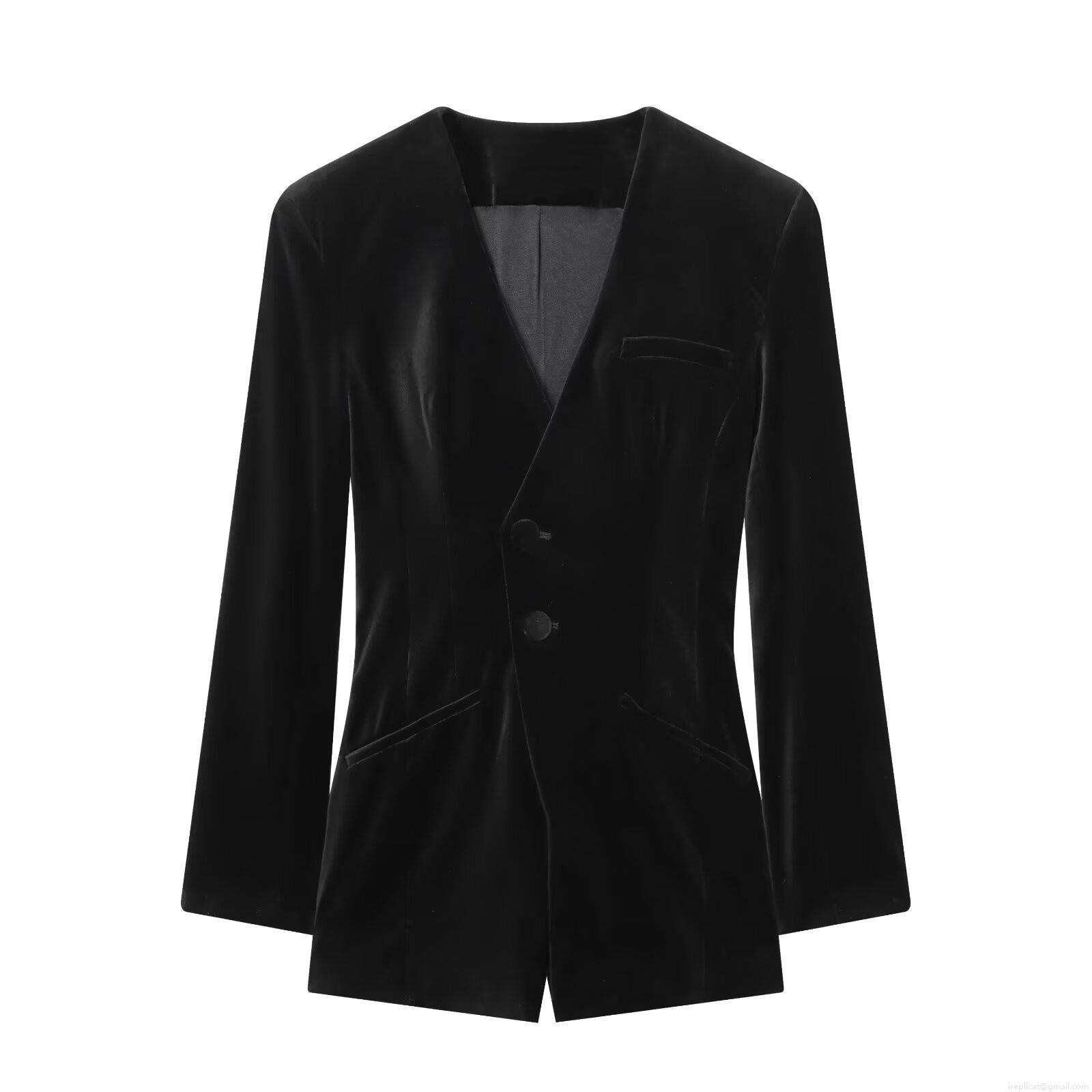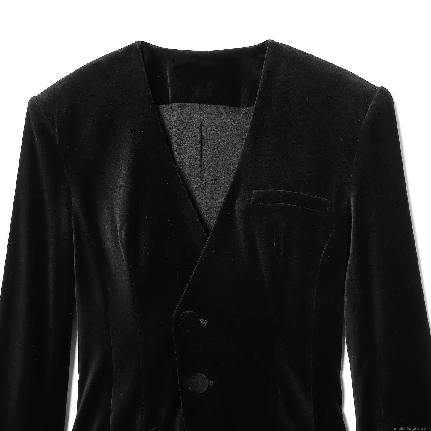 Solid Color, Velvet Material, Double Buckle Design, V-neck Design