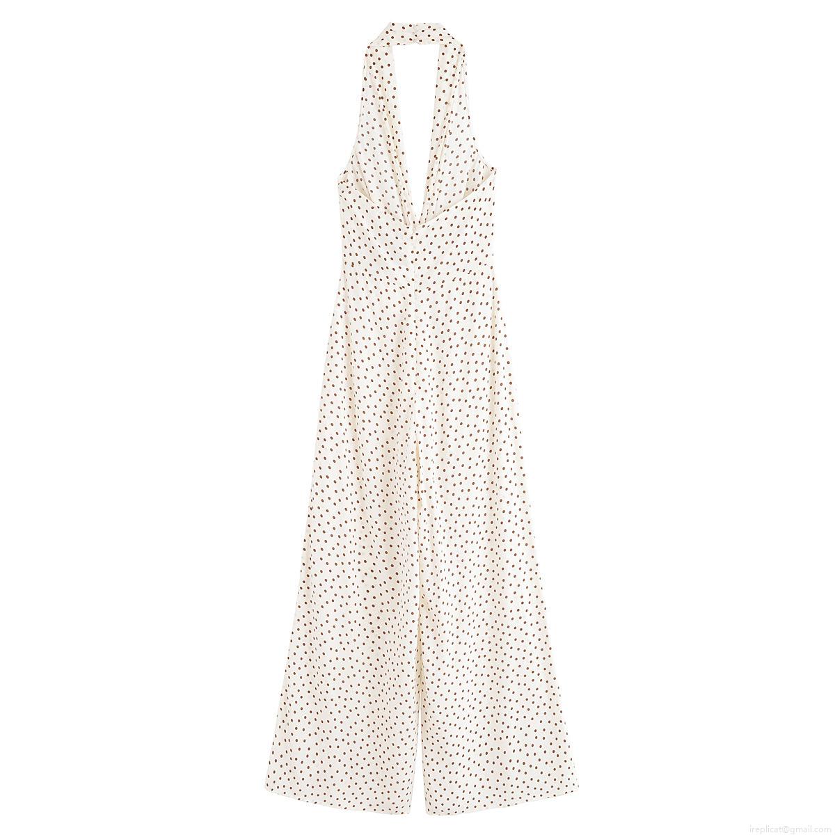 Polka Dots, Neckband, Backless, Button Decoration