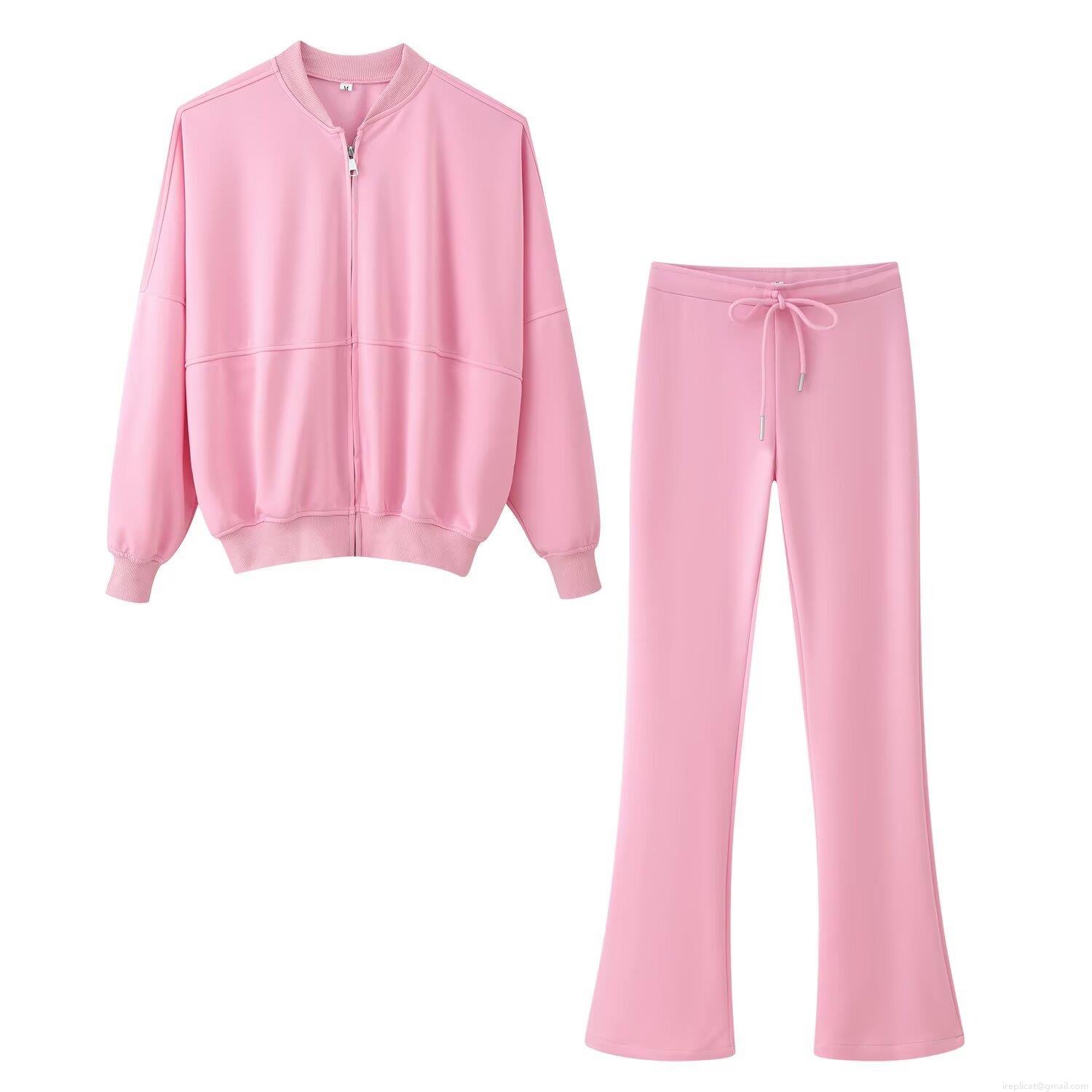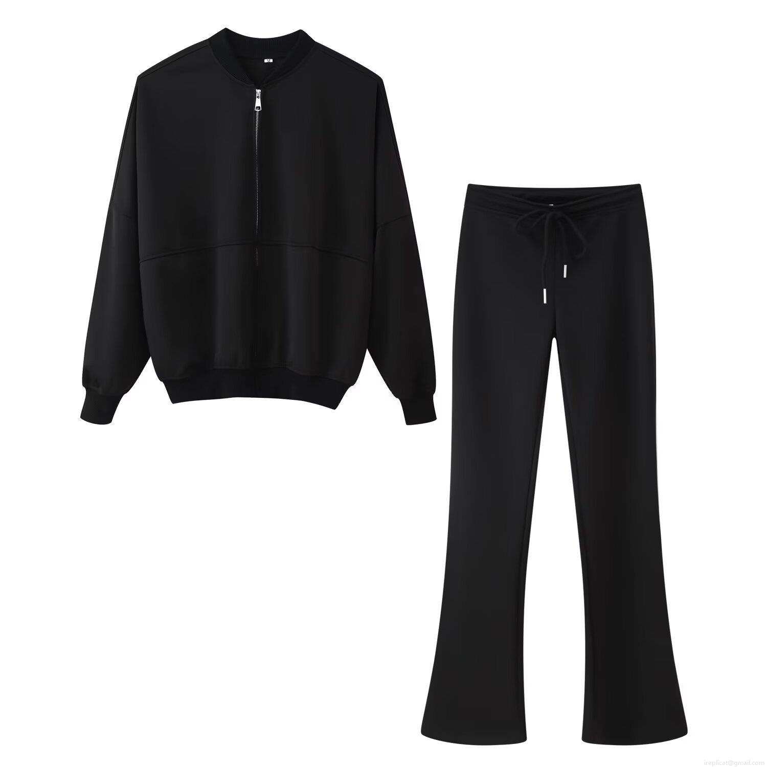 Solid Color, Collage, Zipper Decoration, Stand-up Collar Design, Flared Trouser Legs, High-waisted Drawstring