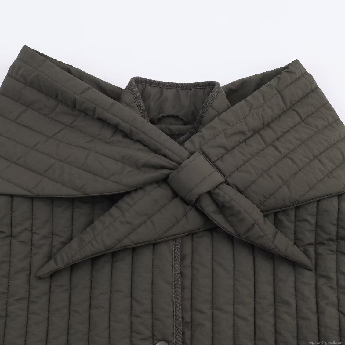 Solid Color, Pocket, Single-breasted, Quilting, Detachable Scarf