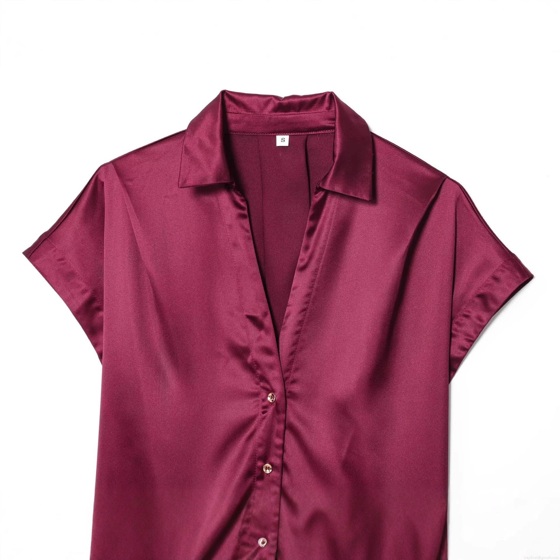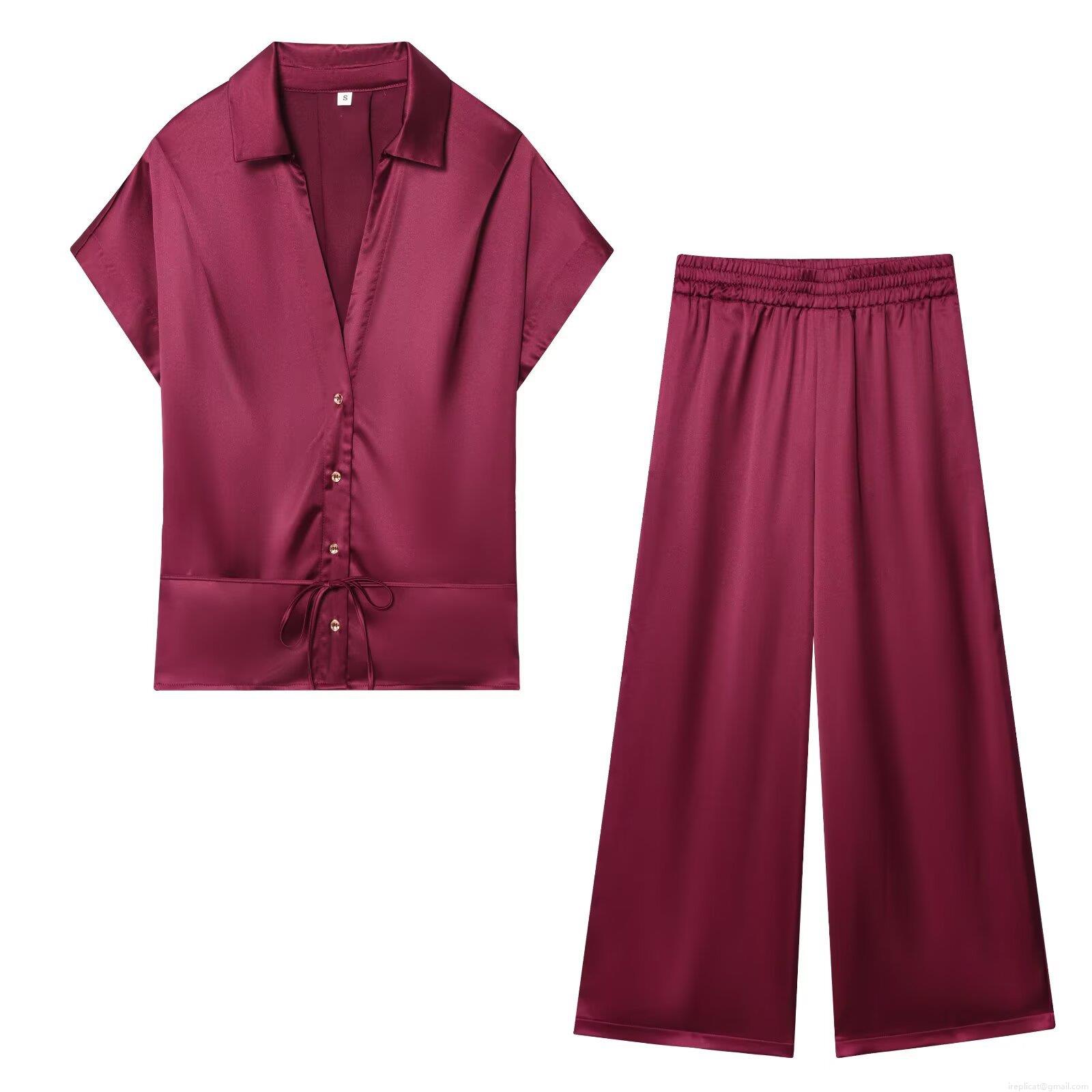 Solid Color, V-neck, Single-breasted, Satin Texture, Belt Tie, Wide Legs