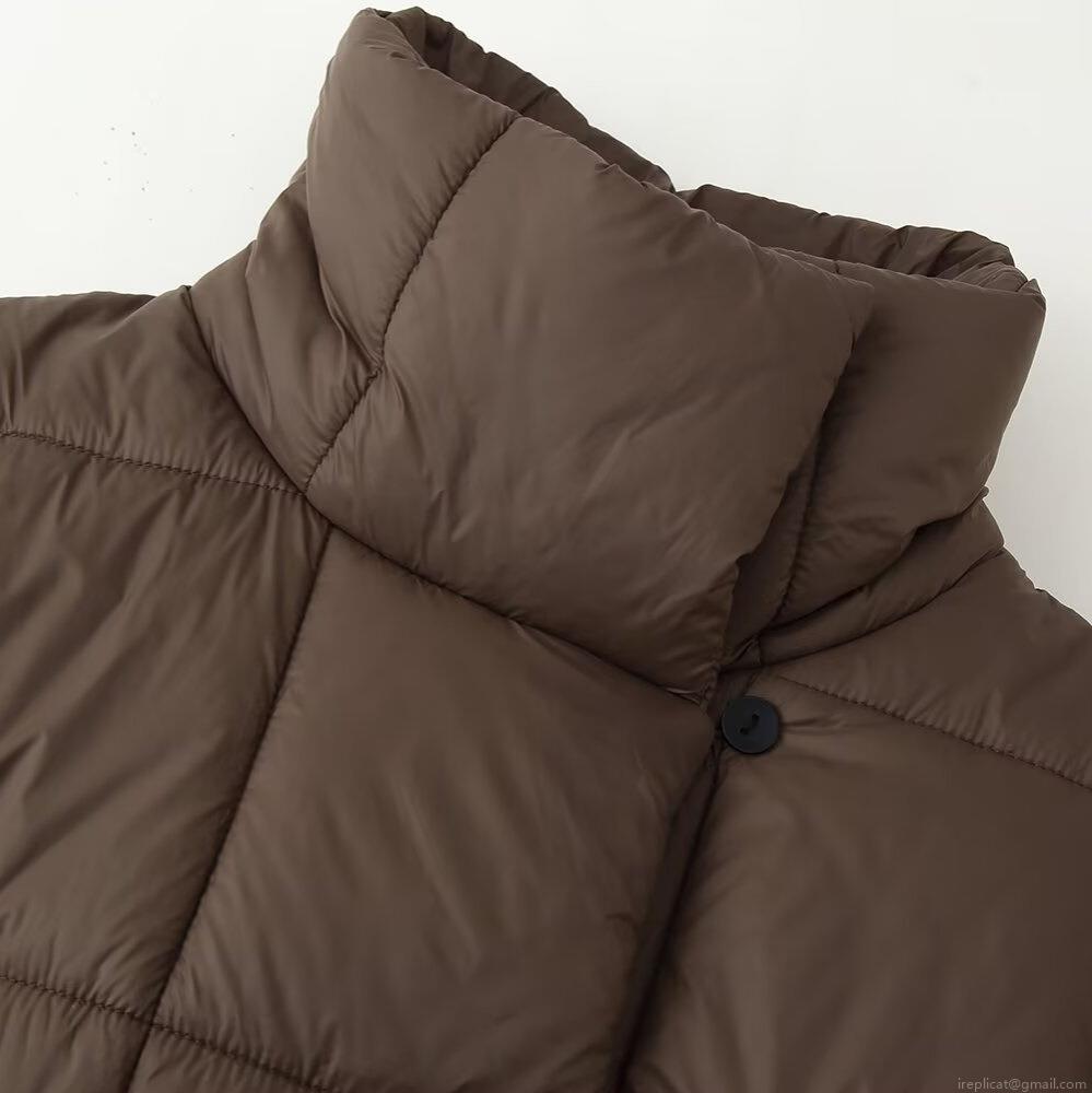 Solid Color, Pocket, Stand-up Collar, Square Quilting, One Button, Drawstring, Checkered Stitching