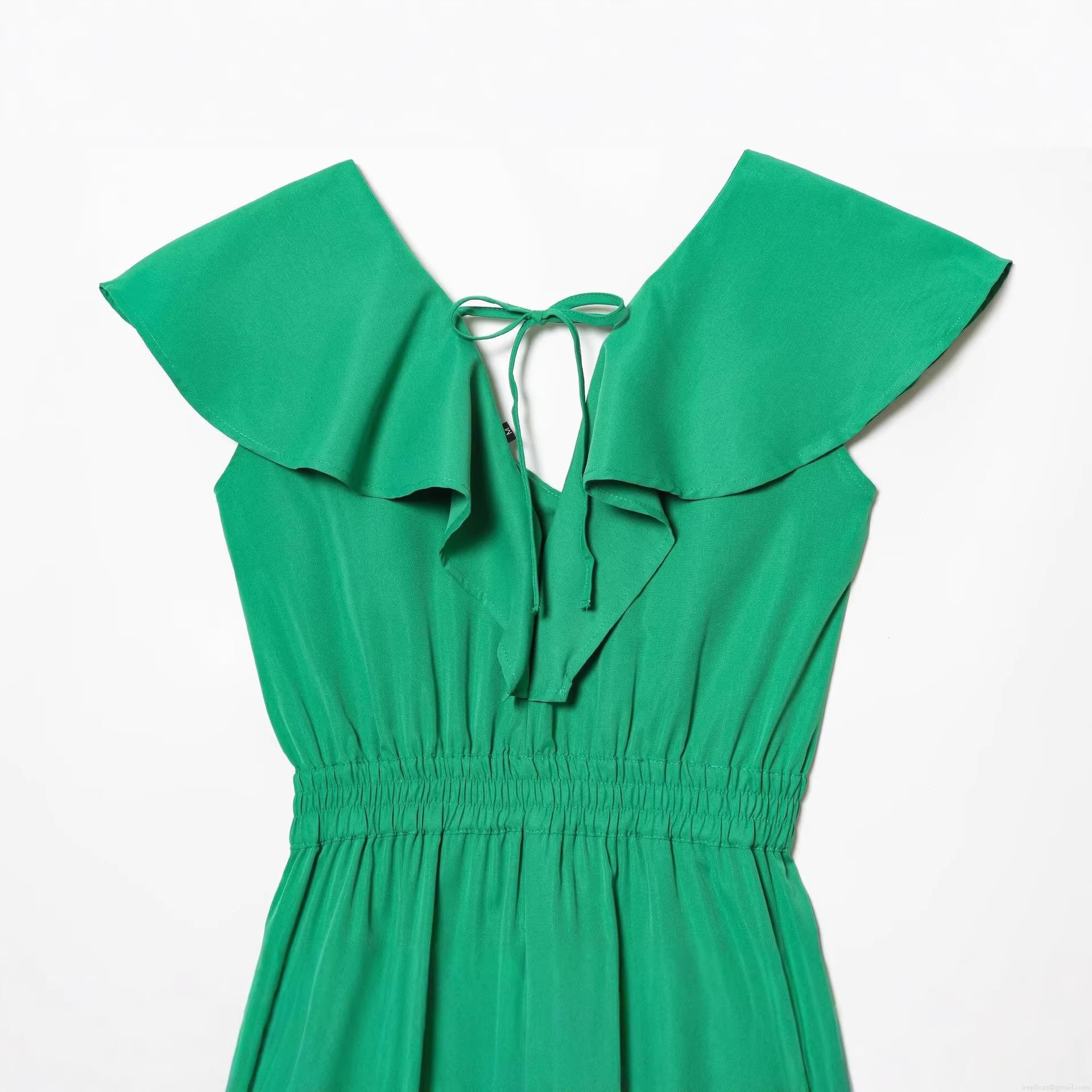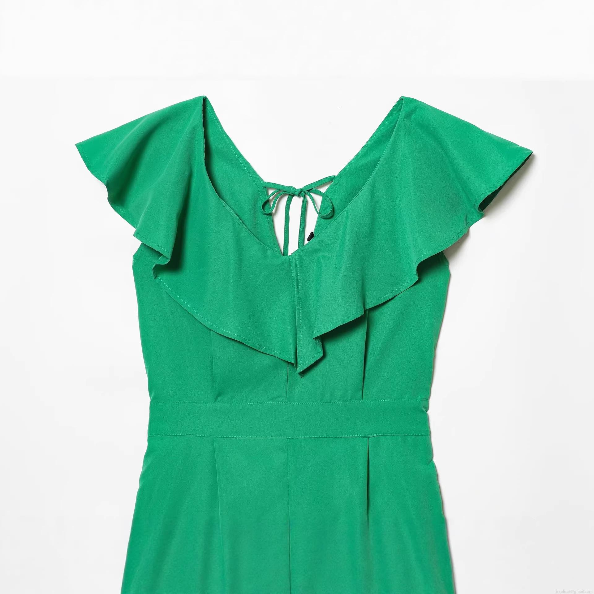 Solid Color, Ruffles, V-neck, Back Strap, Elastic Waist