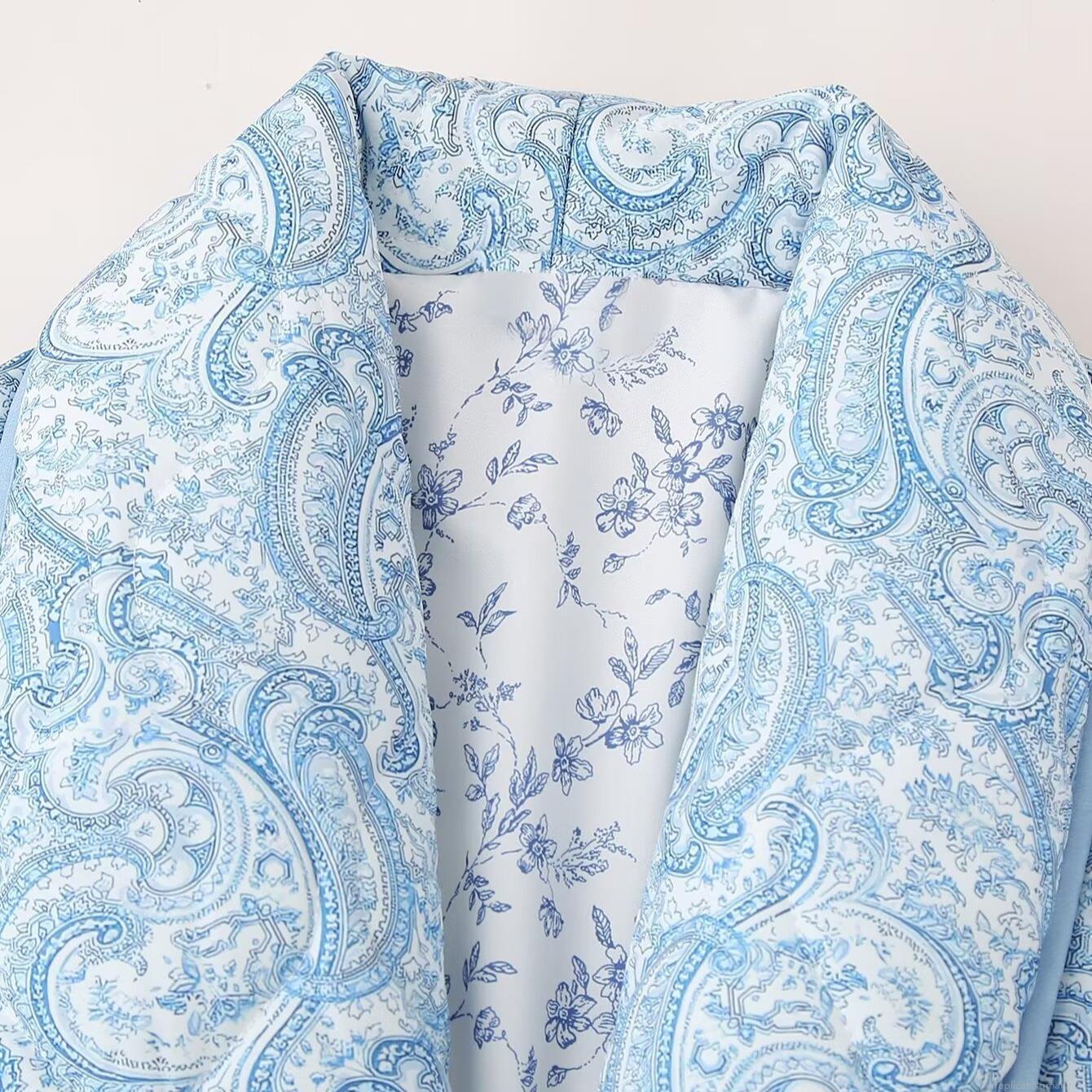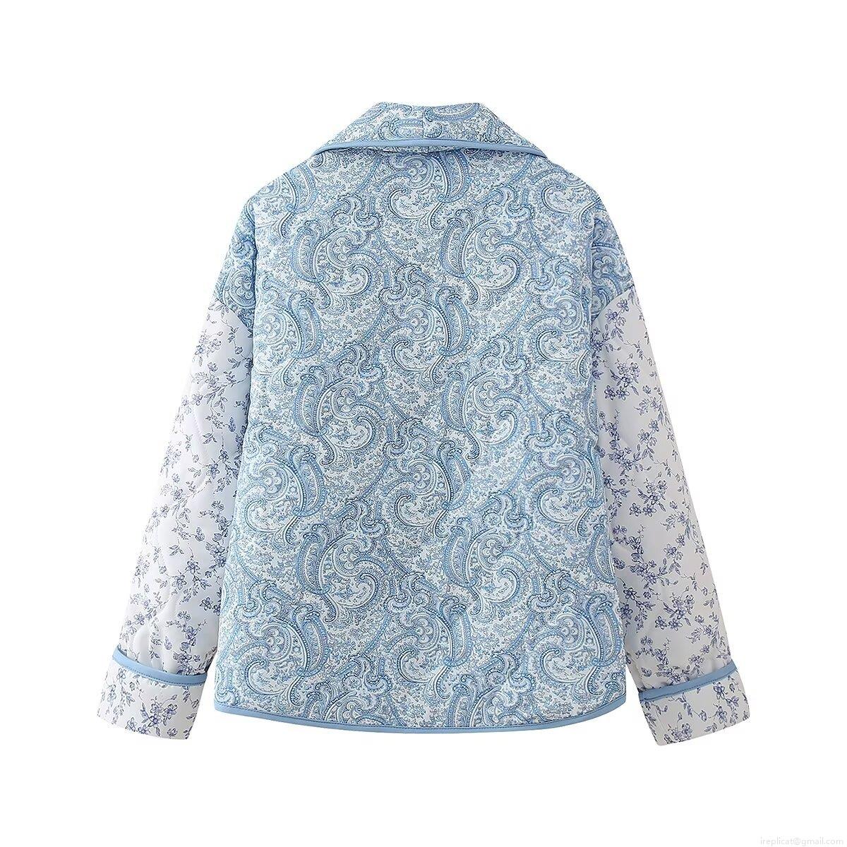 Cashew Flowers, Floral Pattern, Snap Fastener, Lapel, Paisley Pattern, Quilted Design, Sticker Bag, Blue Edging