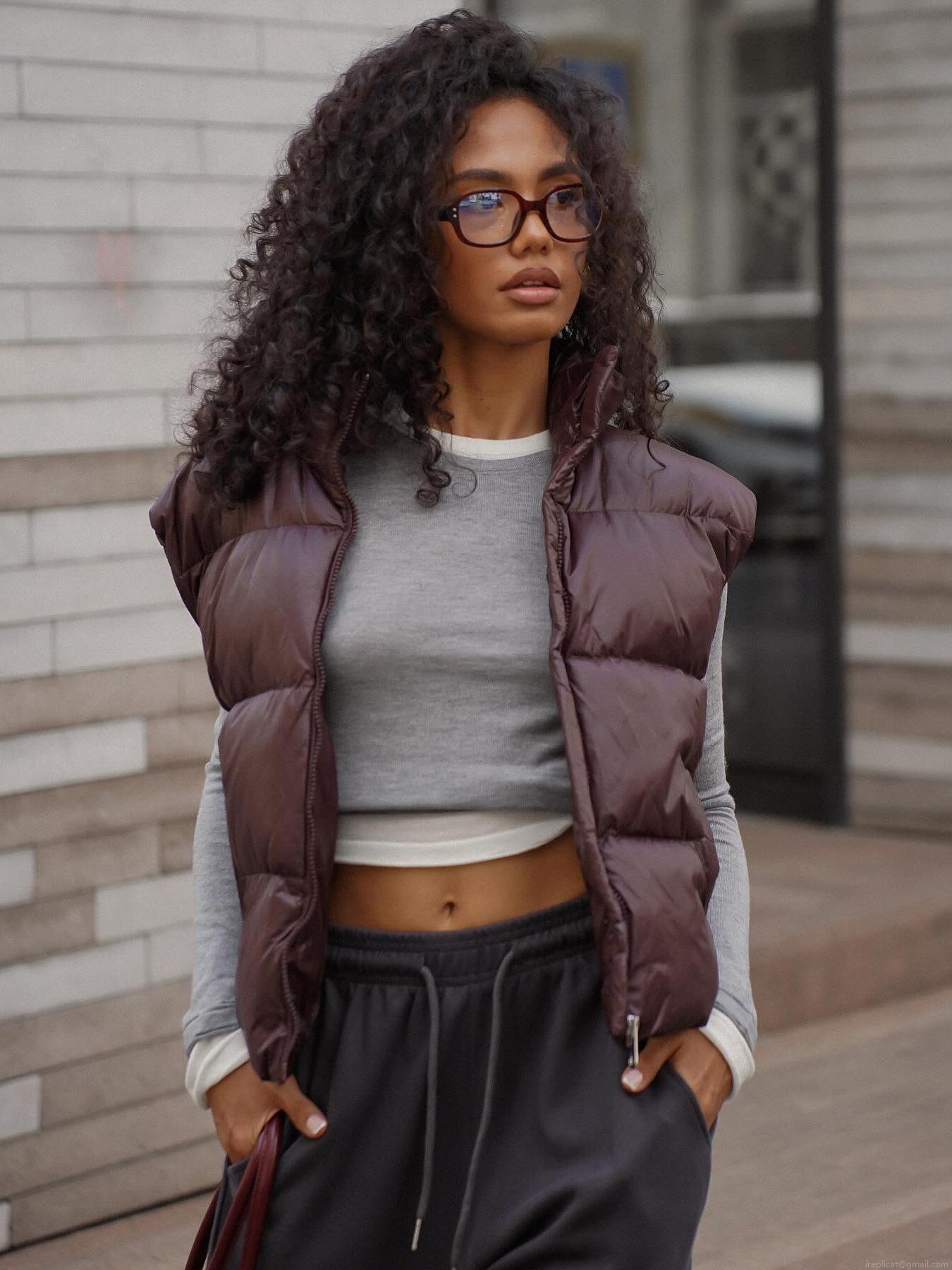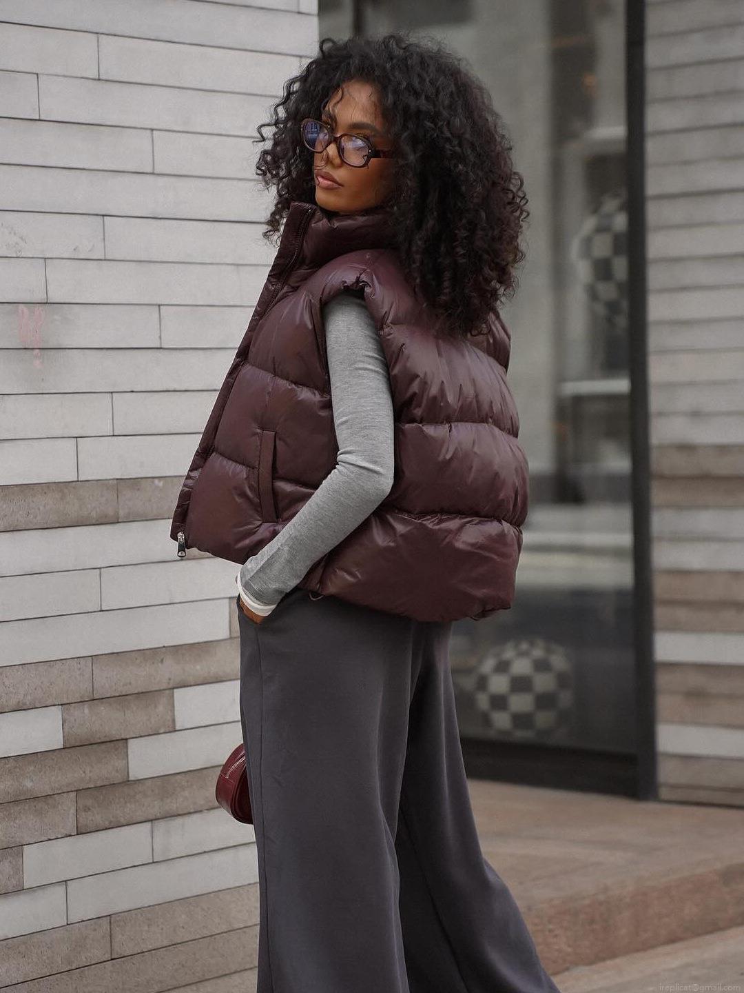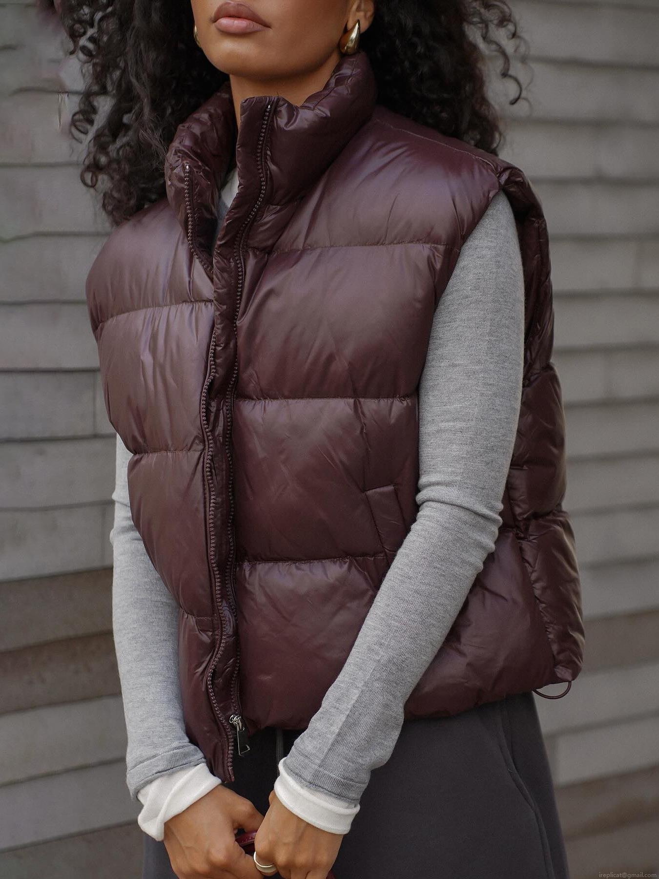 Solid Color, Pocket, Quilting, Zipper, Turtleneck