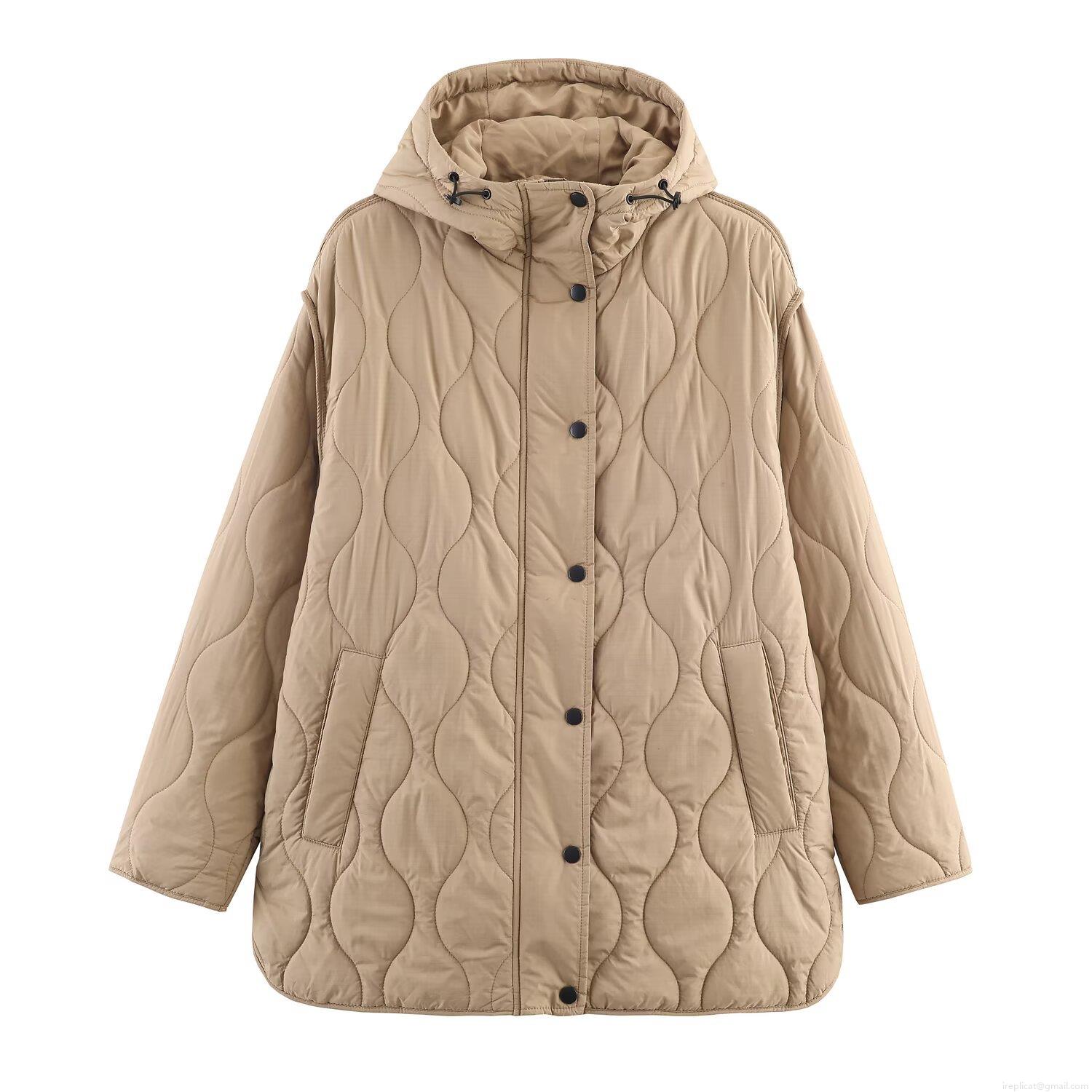 Solid Color, Metal Snap, Quilted Texture, Drawstring Hood, Gourd-shaped Quilting