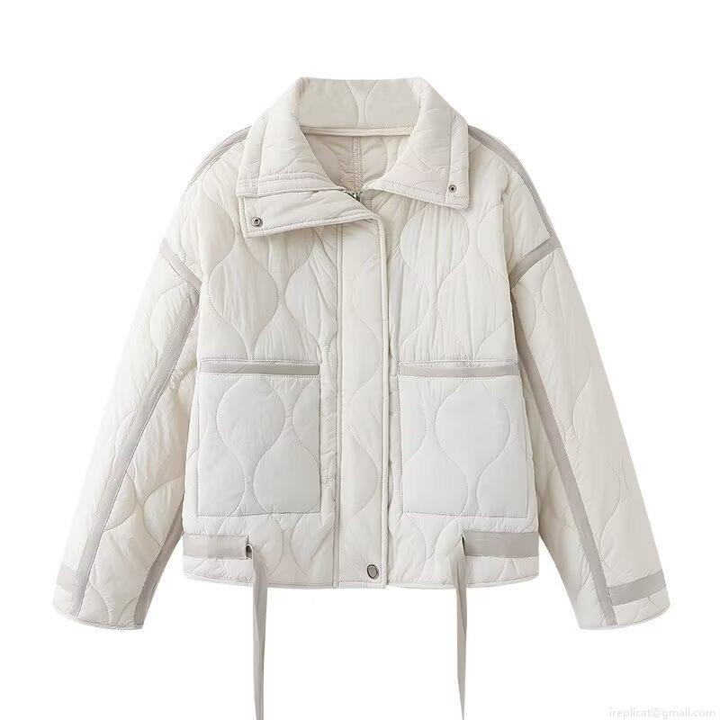 Solid Color, Lace-up Decoration, Stand-up Collar Design, Big Pocket, Wavy Quilting