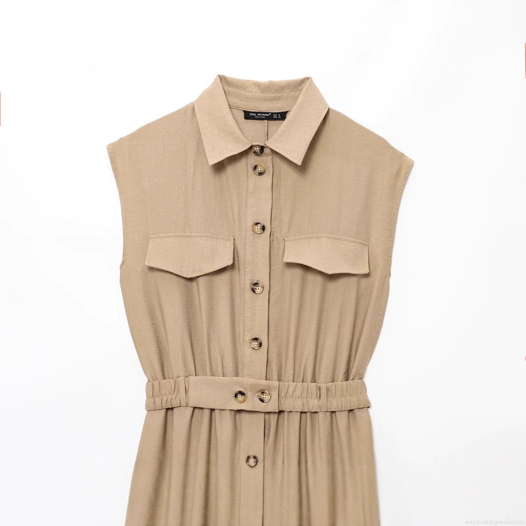 Solid Color, Button Decoration, Flap Pocket, Matching Color Belt