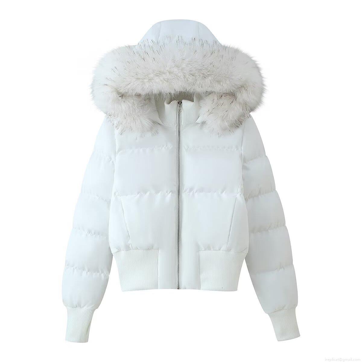 Solid Color, Patch, Hood, Quilted Texture, Ribbed Seam, Artificial Fur Collar