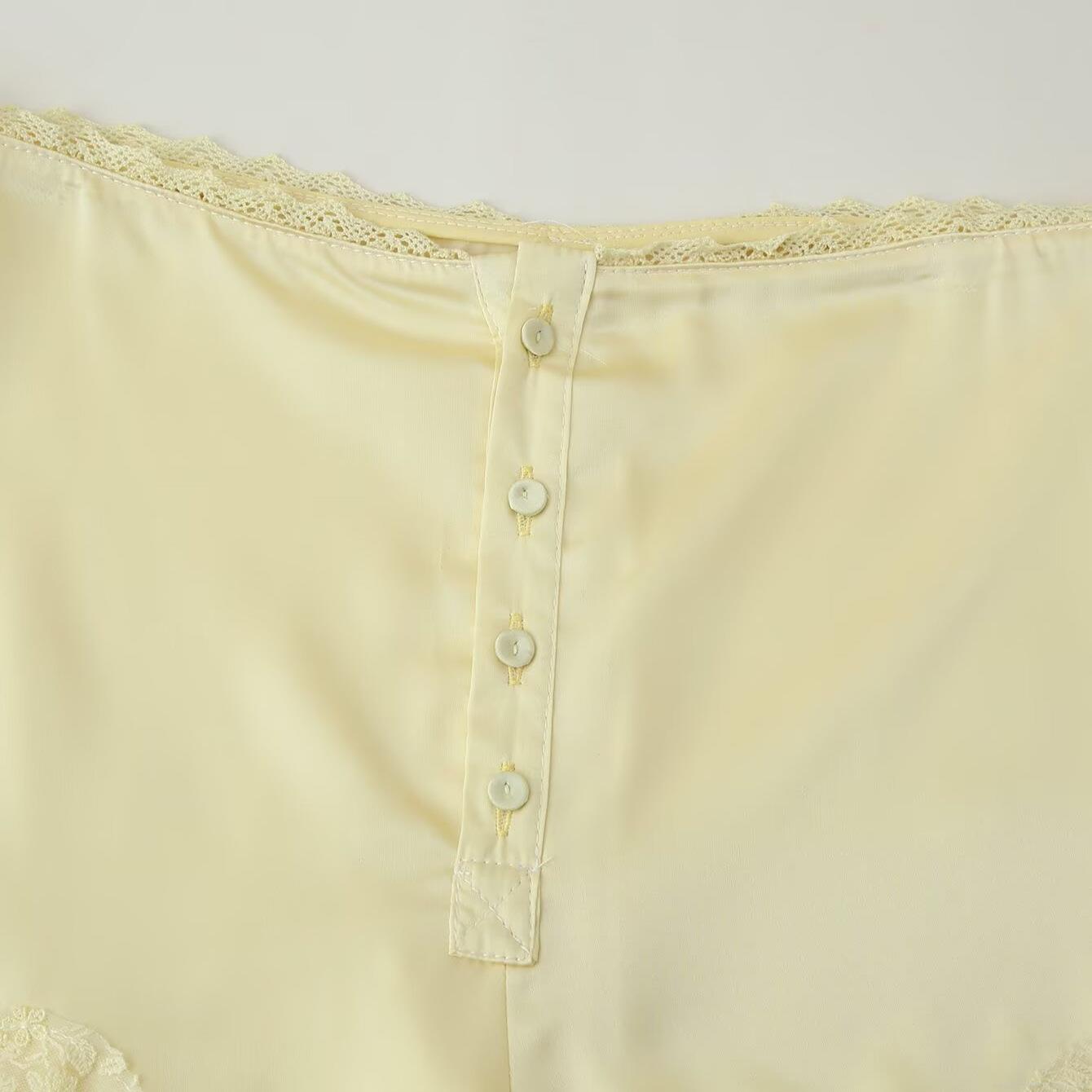 Solid Color, Lace Patchwork, Satin Finish, Button Decoration