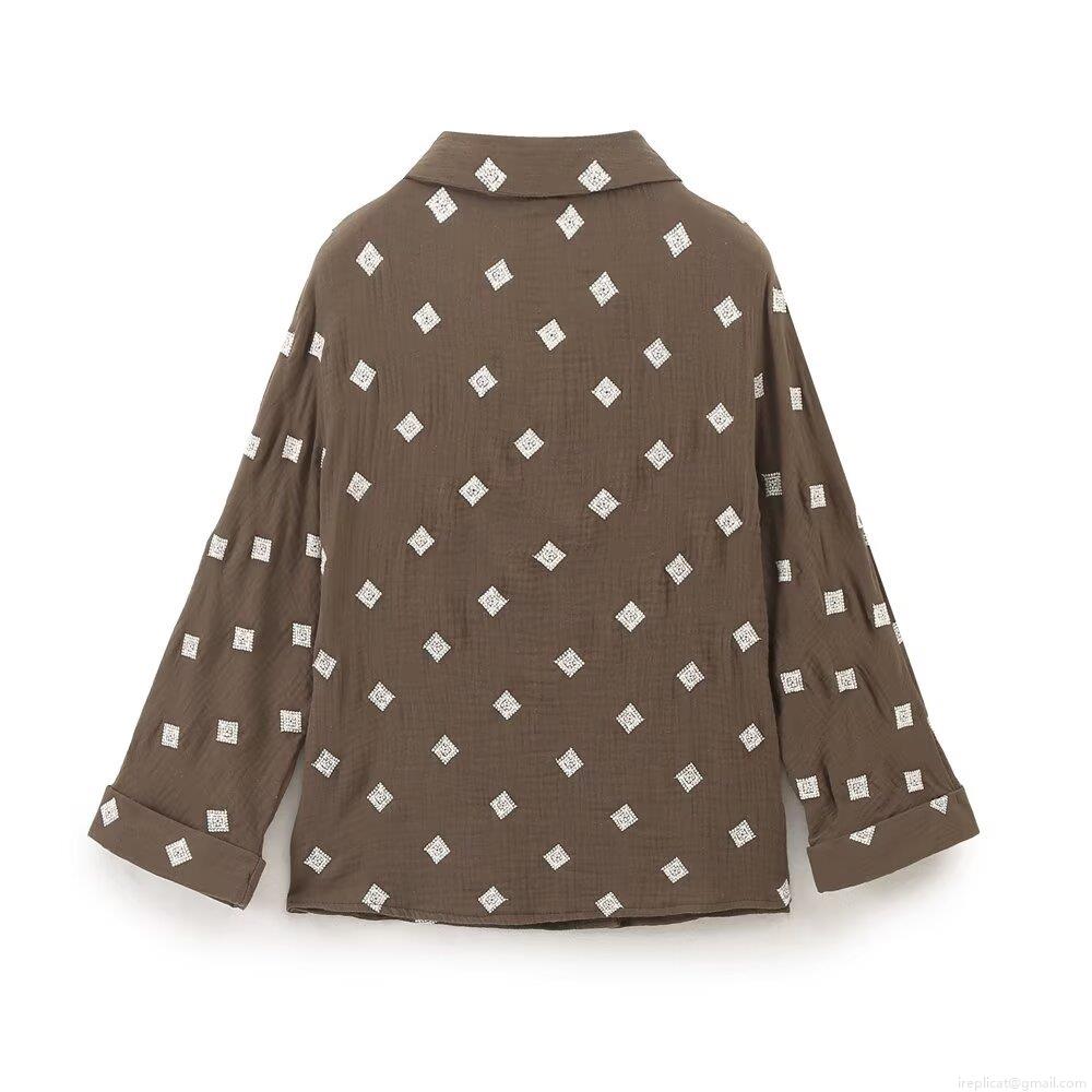 Diamond, Embroidery, Buttons, Drawstring, Wrinkled Texture