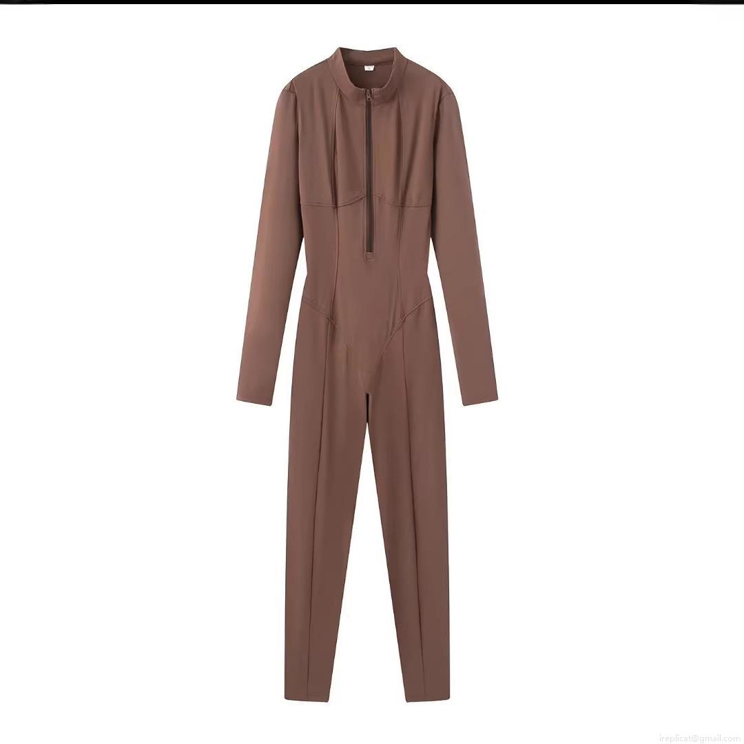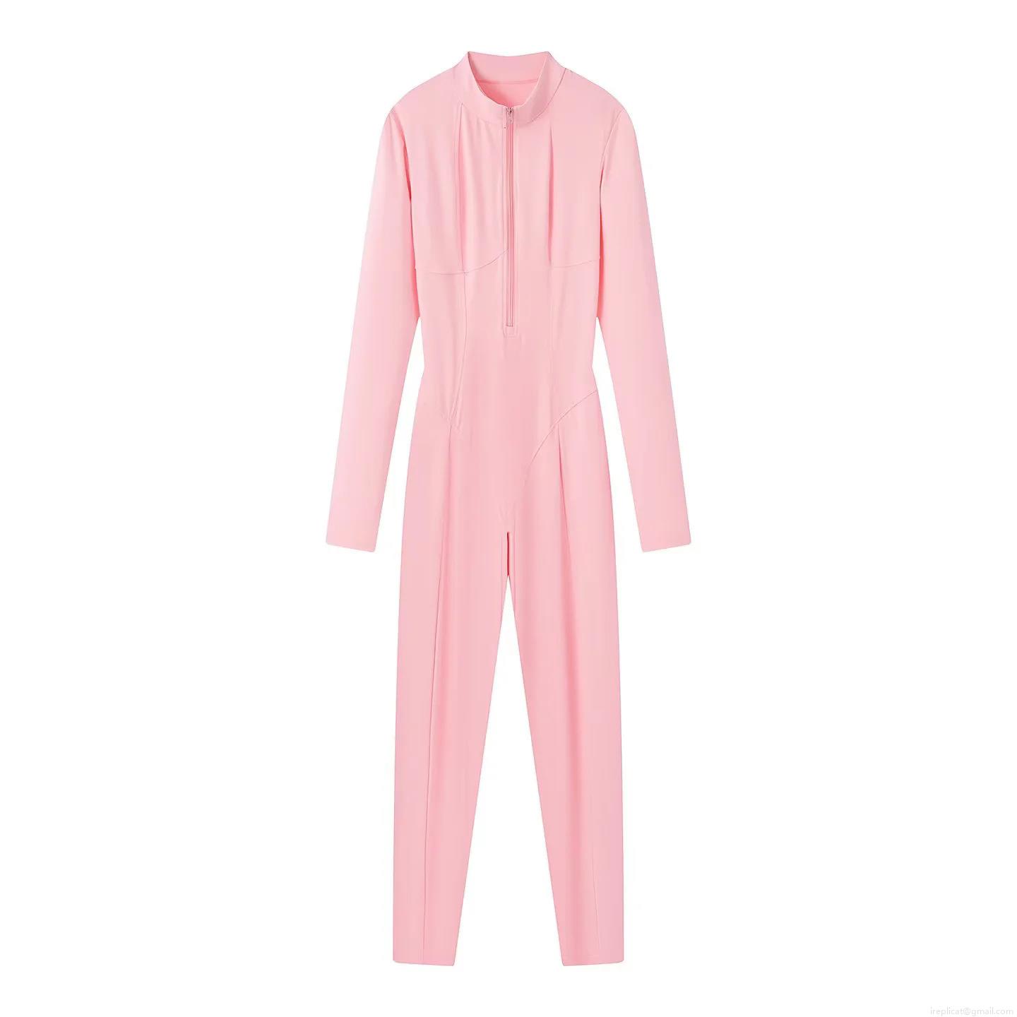 Solid Color, Zipper, Mock Neck, Seam Seam, Waist Shaping