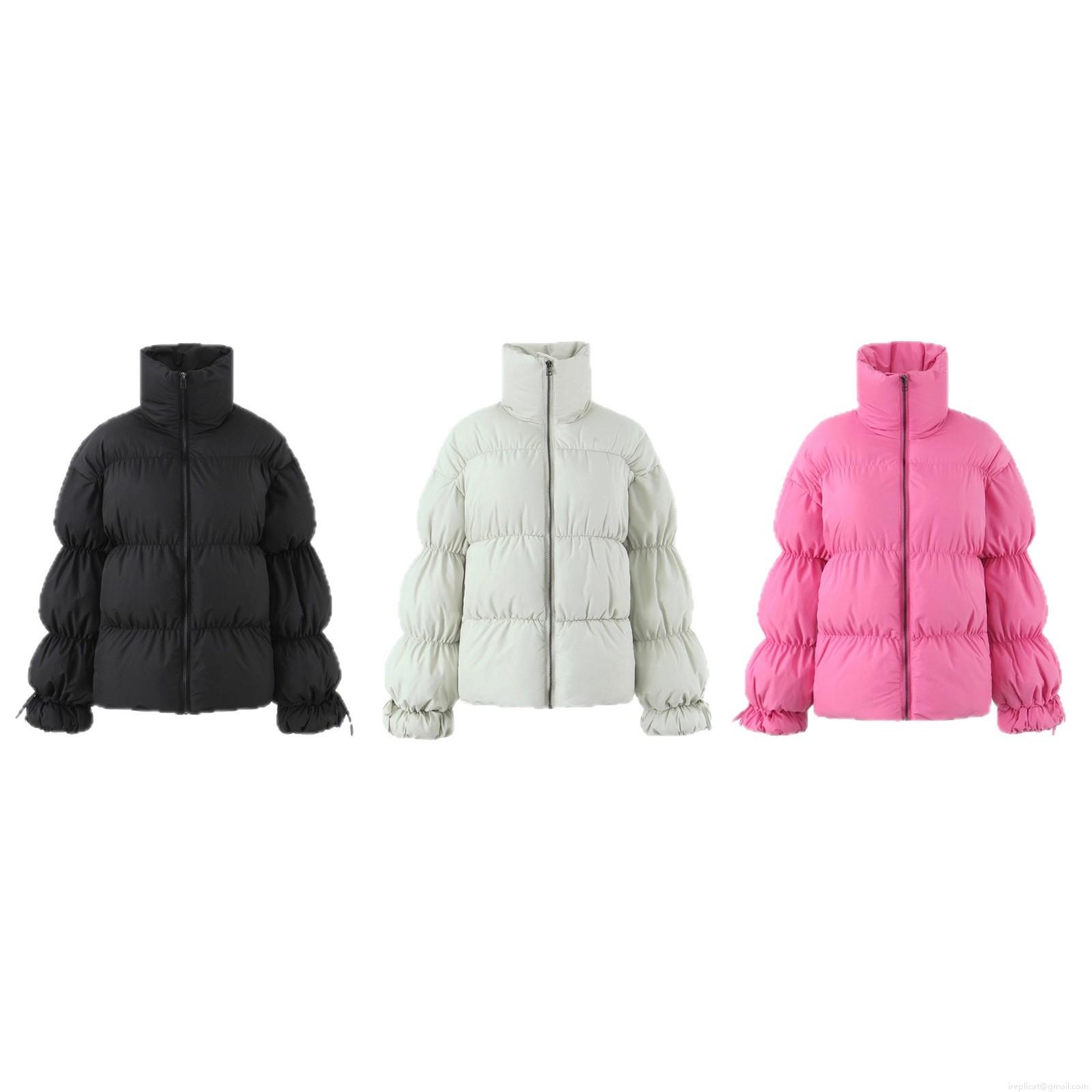 Solid Color, Zipper, Stand-up Collar, Quilting, Drawstring Cuffs