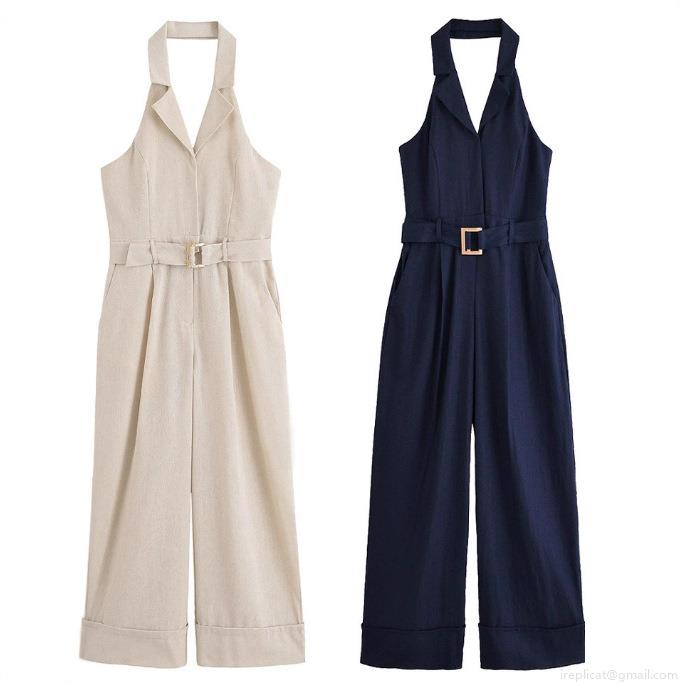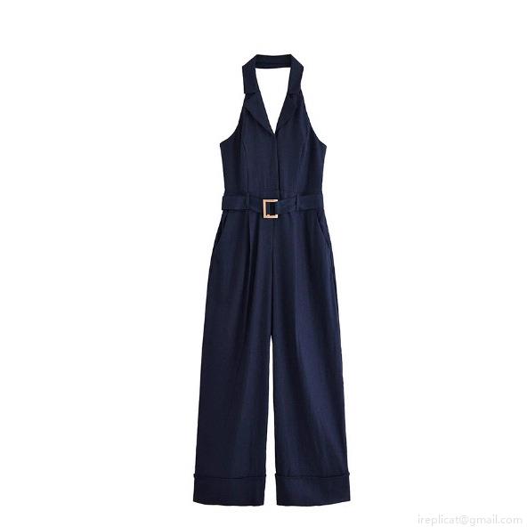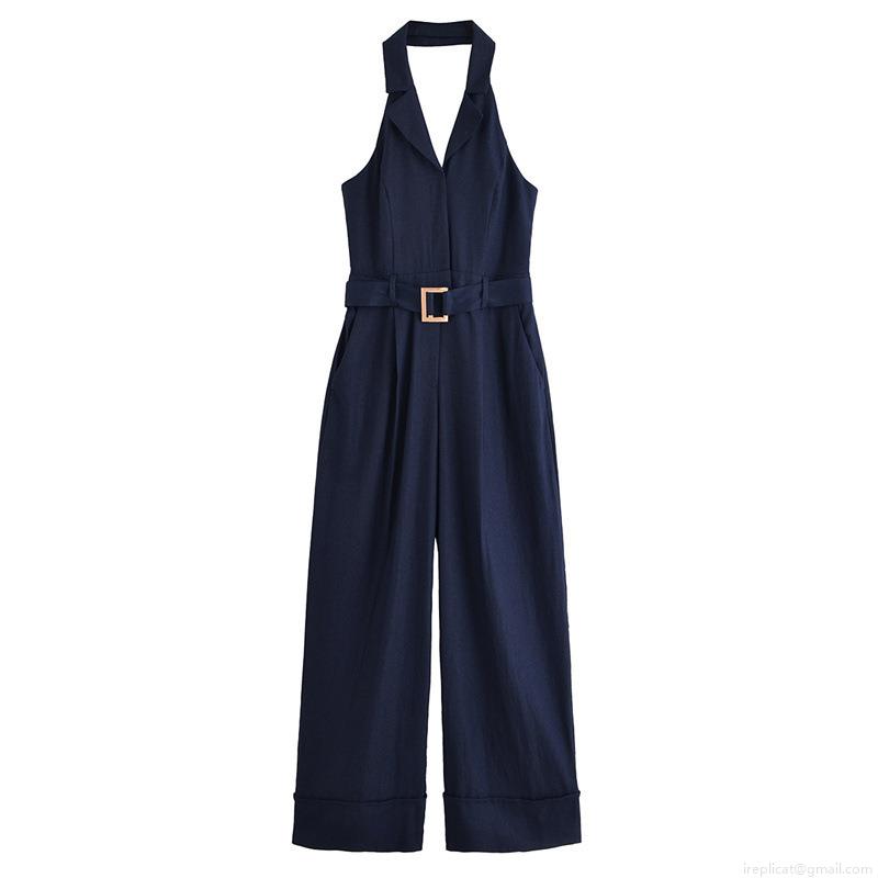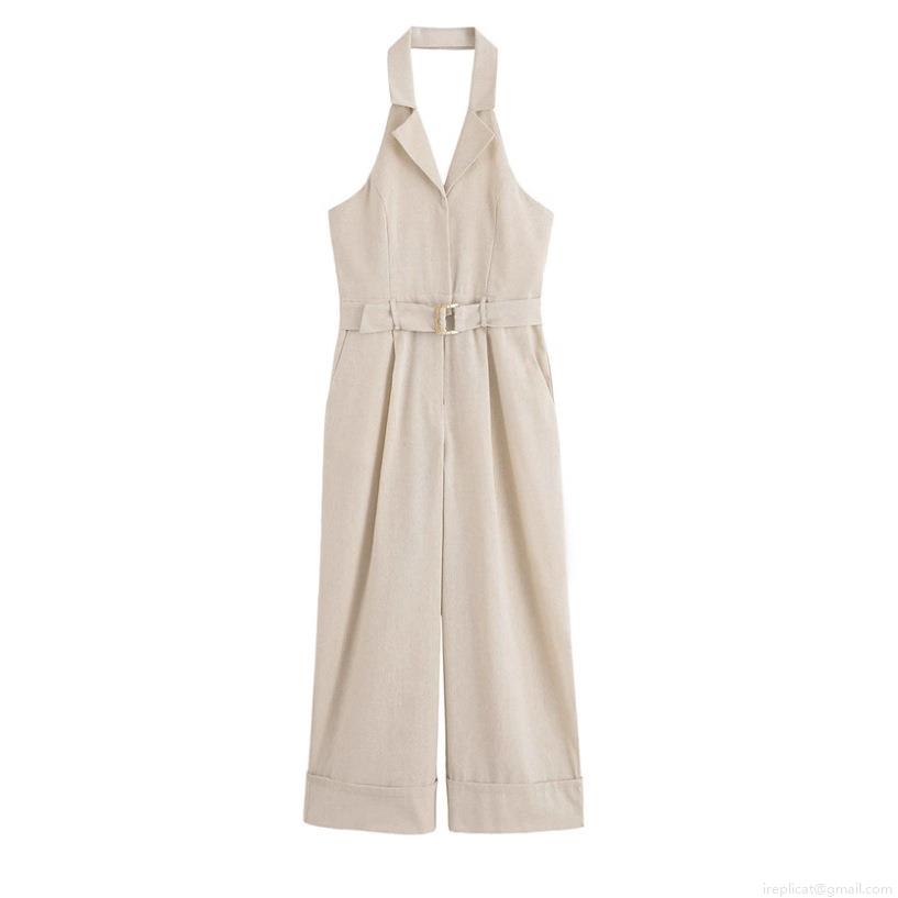 Solid Color, Neckband Design, Wide-leg Style, Suit Lapel, Gold Square Buckle Belt