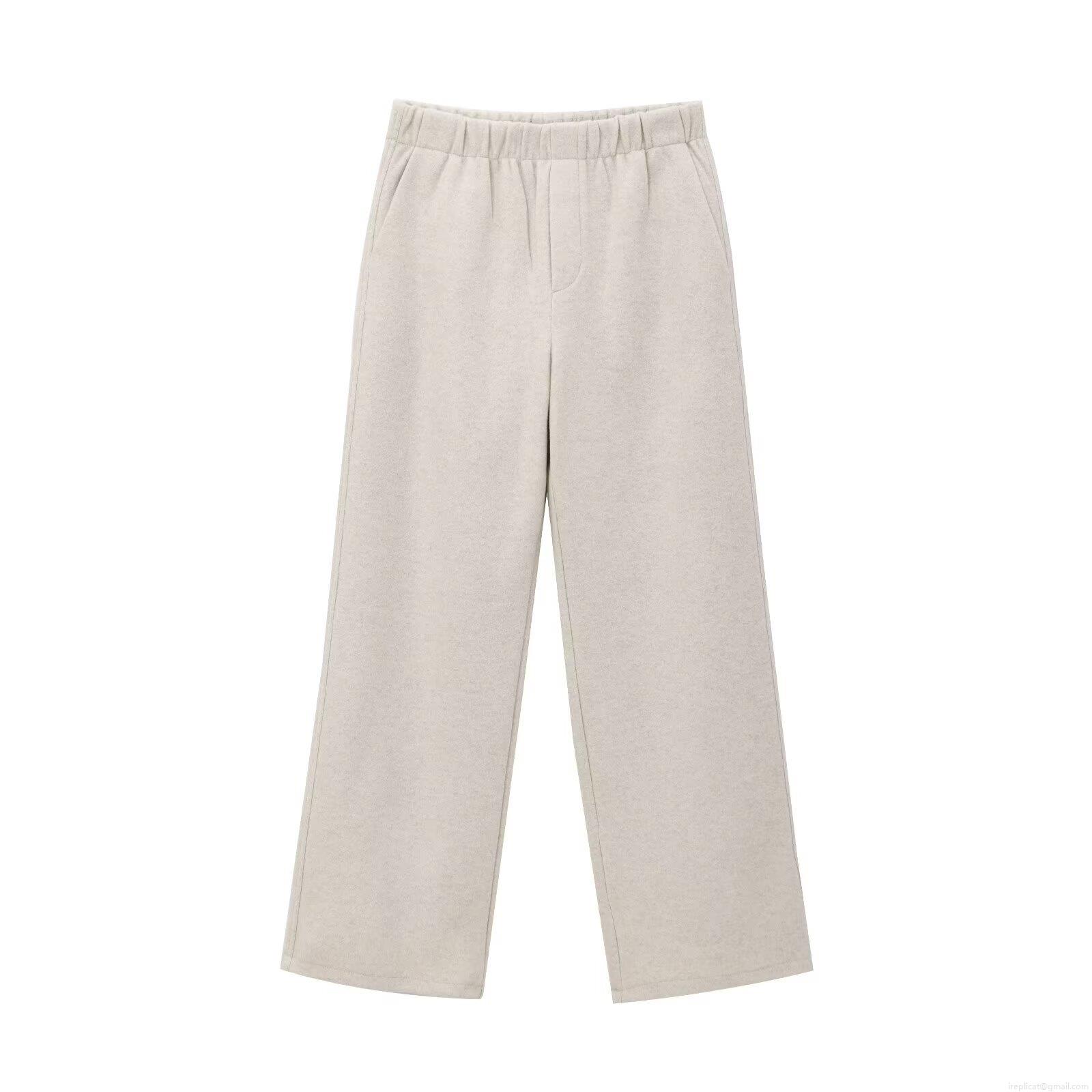 Solid Color, Zipper, Elastic Waistband, Stand-up Collar, Wide-leg, Dropped Shoulder Sleeves