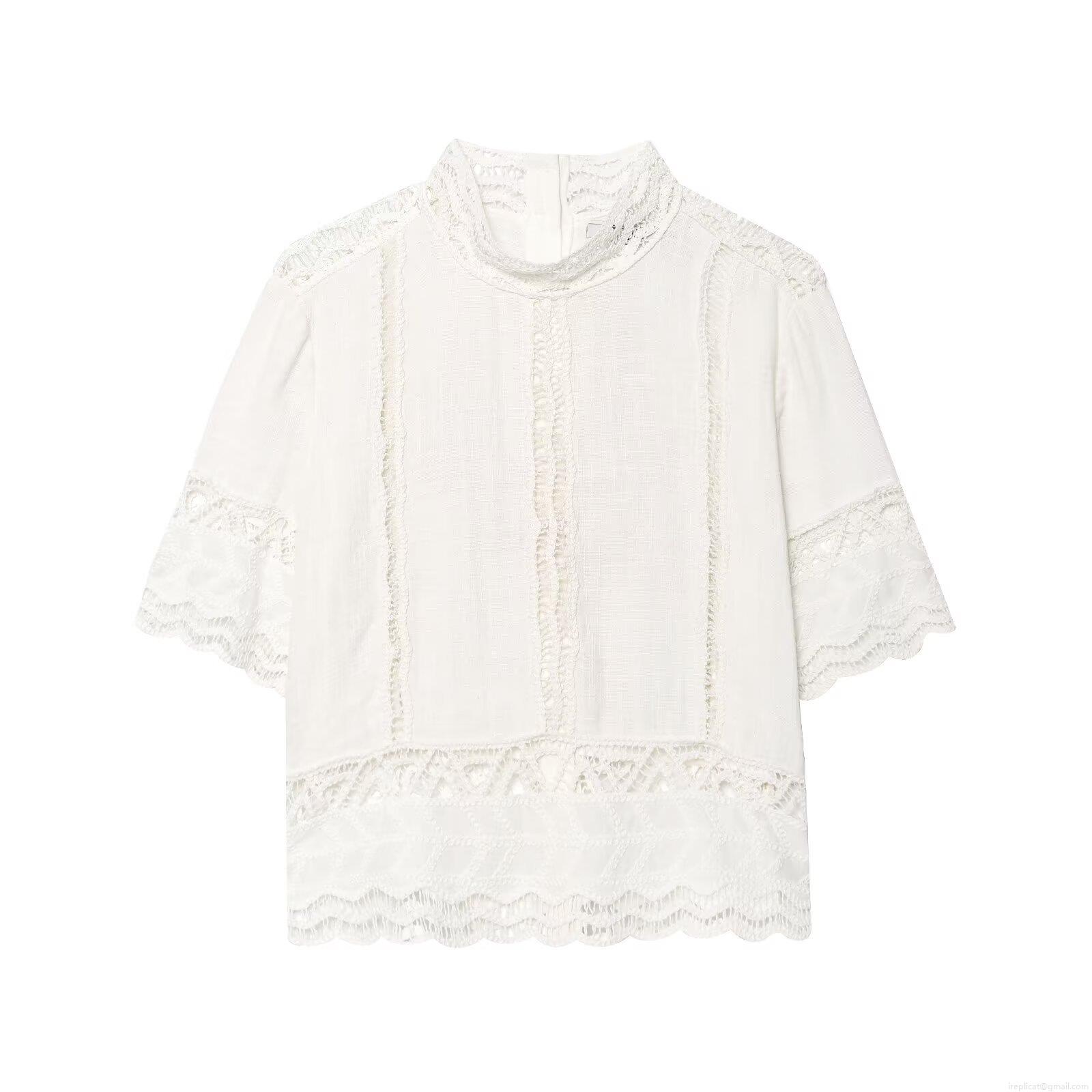 Solid Color, Embroidery, Hollow Out, Lace Trim, Crochet, Stand-up Collar, Invisible Zipper