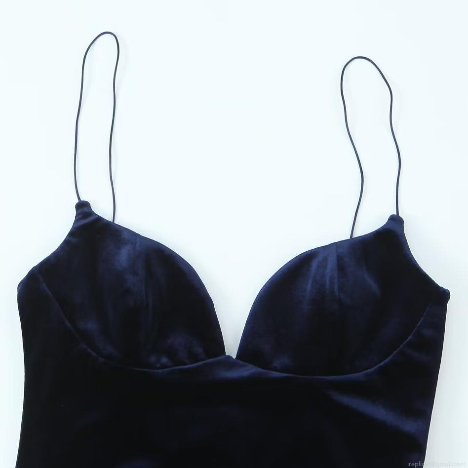 Solid Color, Metal Snap, Backless, Deep V-neck, Thin Straps, Concealed Side Zipper