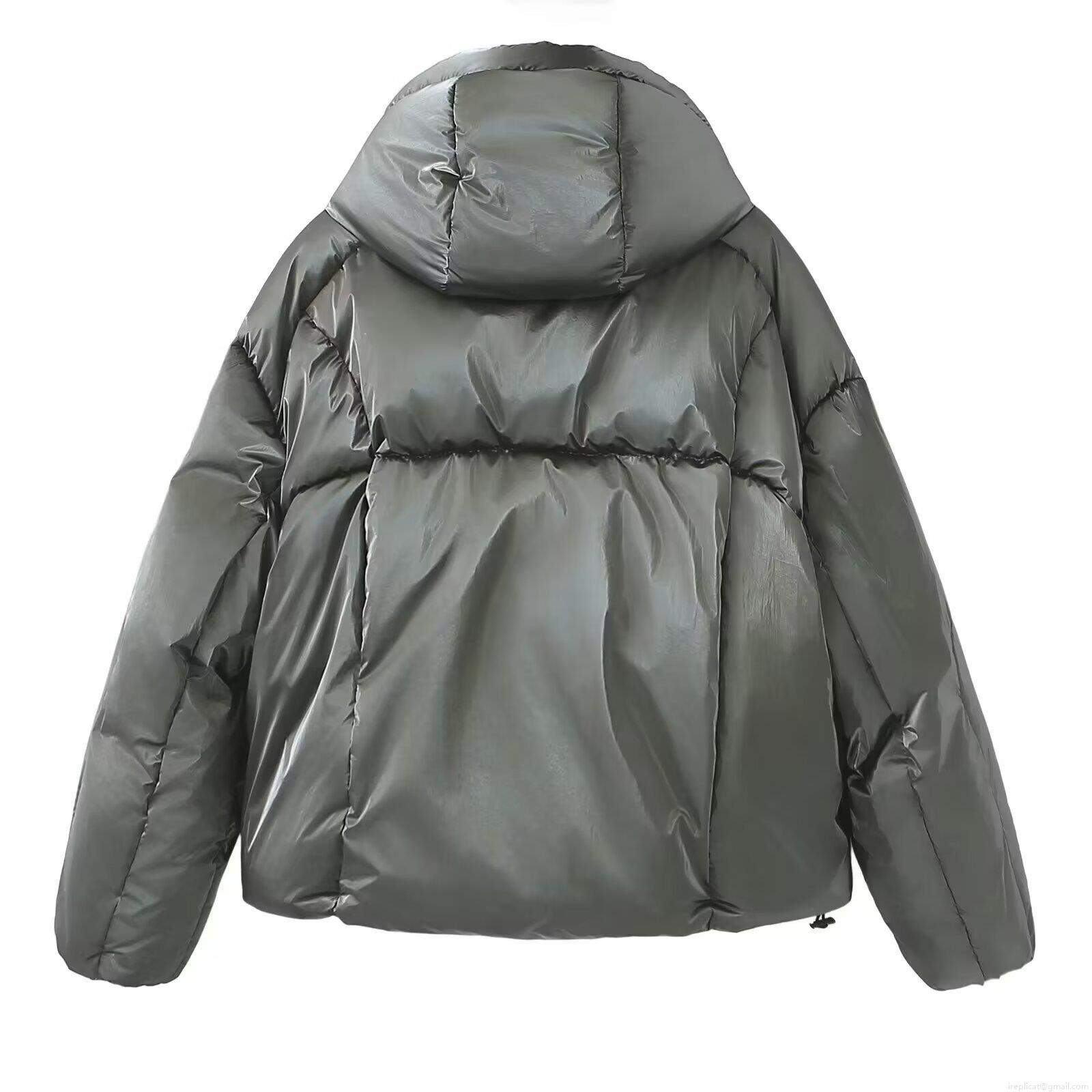Solid Color, Metallic Texture, Hooded Design, Pocket Decoration, Glossy Material, Drawstring Hem