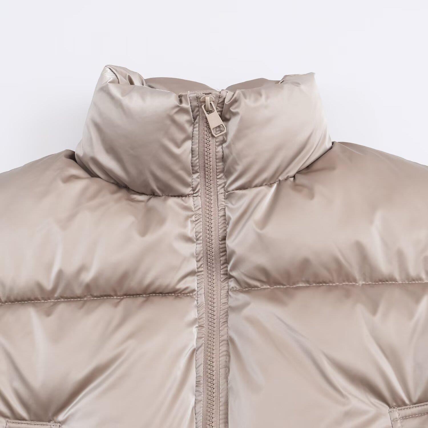 Solid Color, Pocket, Quilting, Glossy, Stand-up Collar