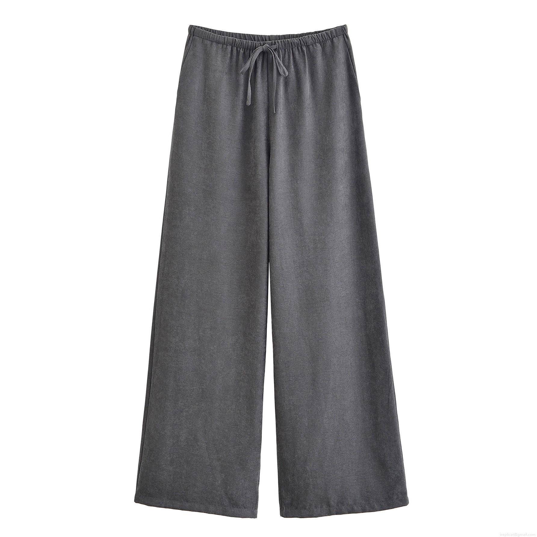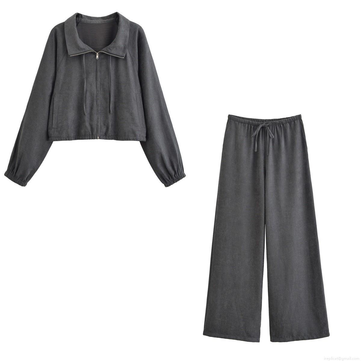 Solid Color, Zipper, Drawstring, Wide-leg, Elastic Seam, Dropped Shoulder Sleeves