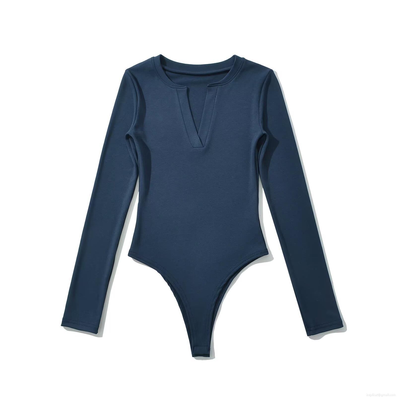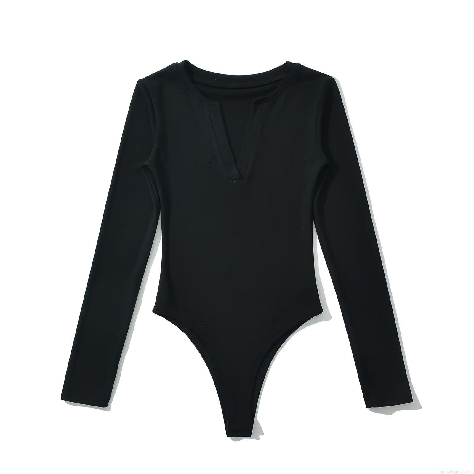 Solid Color, Ribbed Knit, One-piece Design, Deep V-neck
